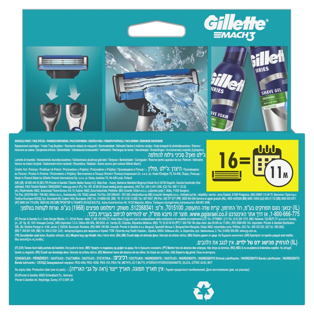 - 1 ostrze = 15 użyć. Każde ostrze do maszynki do golenia Gillette Mach3 zapewnia golenie nawet do 15 razy