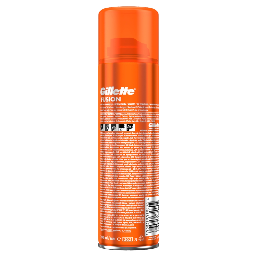 Żel do golenia Gillette Fusion do skóry wrażliwej z olejkiem migdałowym pomaga w dokładnym i gładkim goleniu oraz w uzyskaniu atrakcyjnego wyglądu.