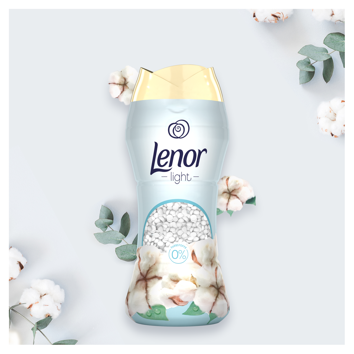 Dodaj perełki zapachowe do prania Lenor Cotton Fresh, aby uzyskać delikatną świeżość, która trwa. Ten niezawierający barwników wzmacniacz zapachu został opracowany tak, aby nadać praniu lekki, świeży zapach bawełny. Wypróbuj perełki zapachowe w połączeniu z płynem do płukania tkanin Lenor Cotton Fresh, opracowanym tak, by działać w idealnej harmonii z nimi i zapewnić niesamowitą świeżość.