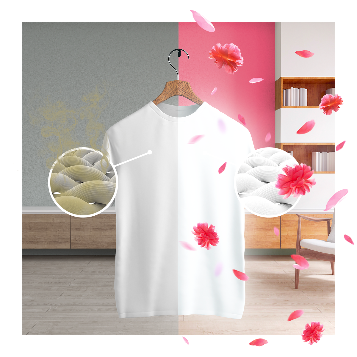 • Płyn do płukania tkanin, który pozwala Ci poczuć świeży zapach prania suszonego na zewnątrz, nawet jeśli zostało rozwieszone w domu