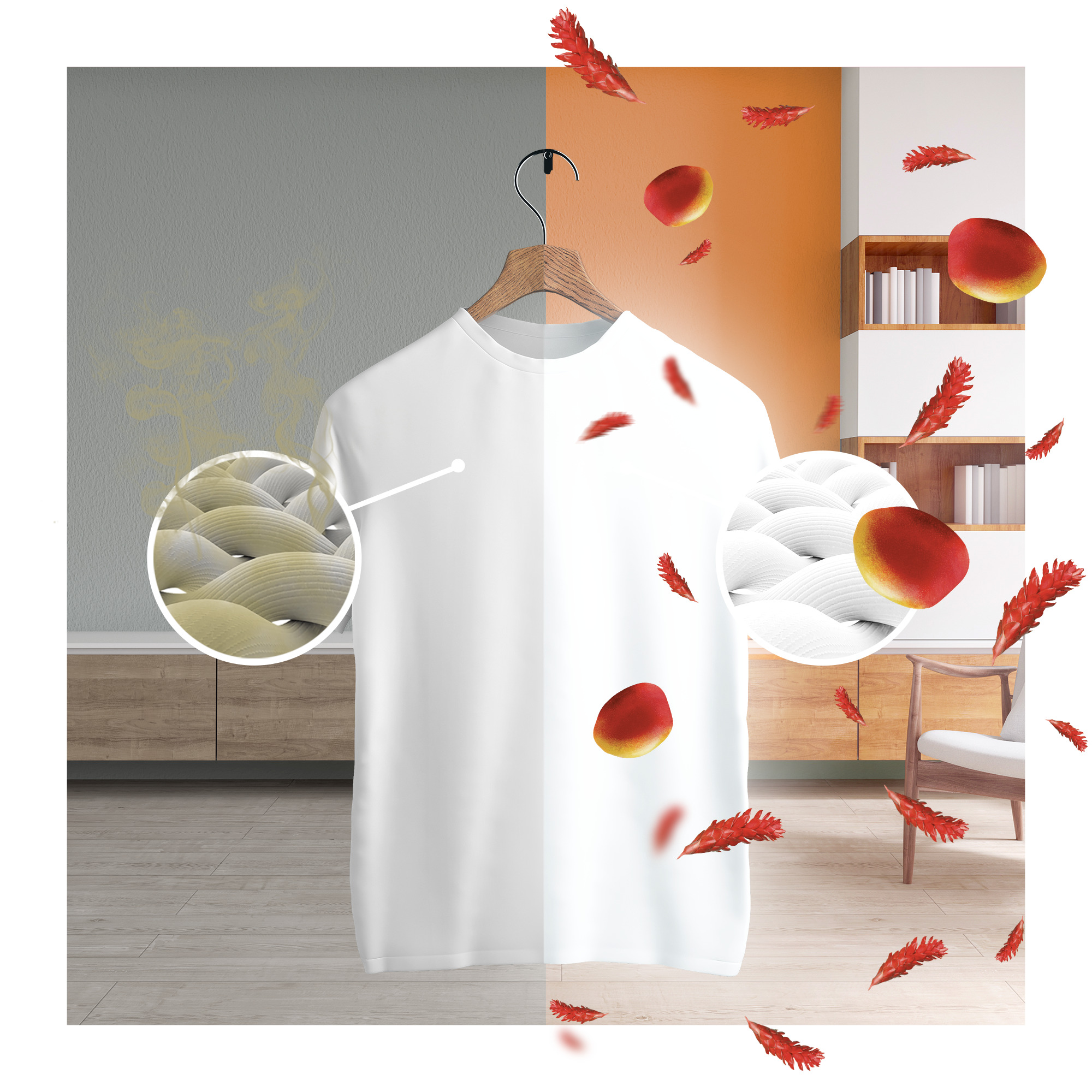 • Płyn do płukania tkanin, który pozwala Ci poczuć świeży zapach prania suszonego na zewnątrz, nawet jeśli zostało rozwieszone w domu
