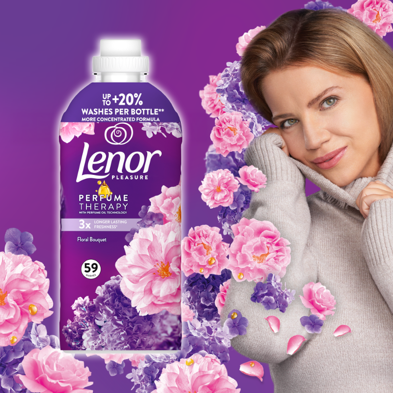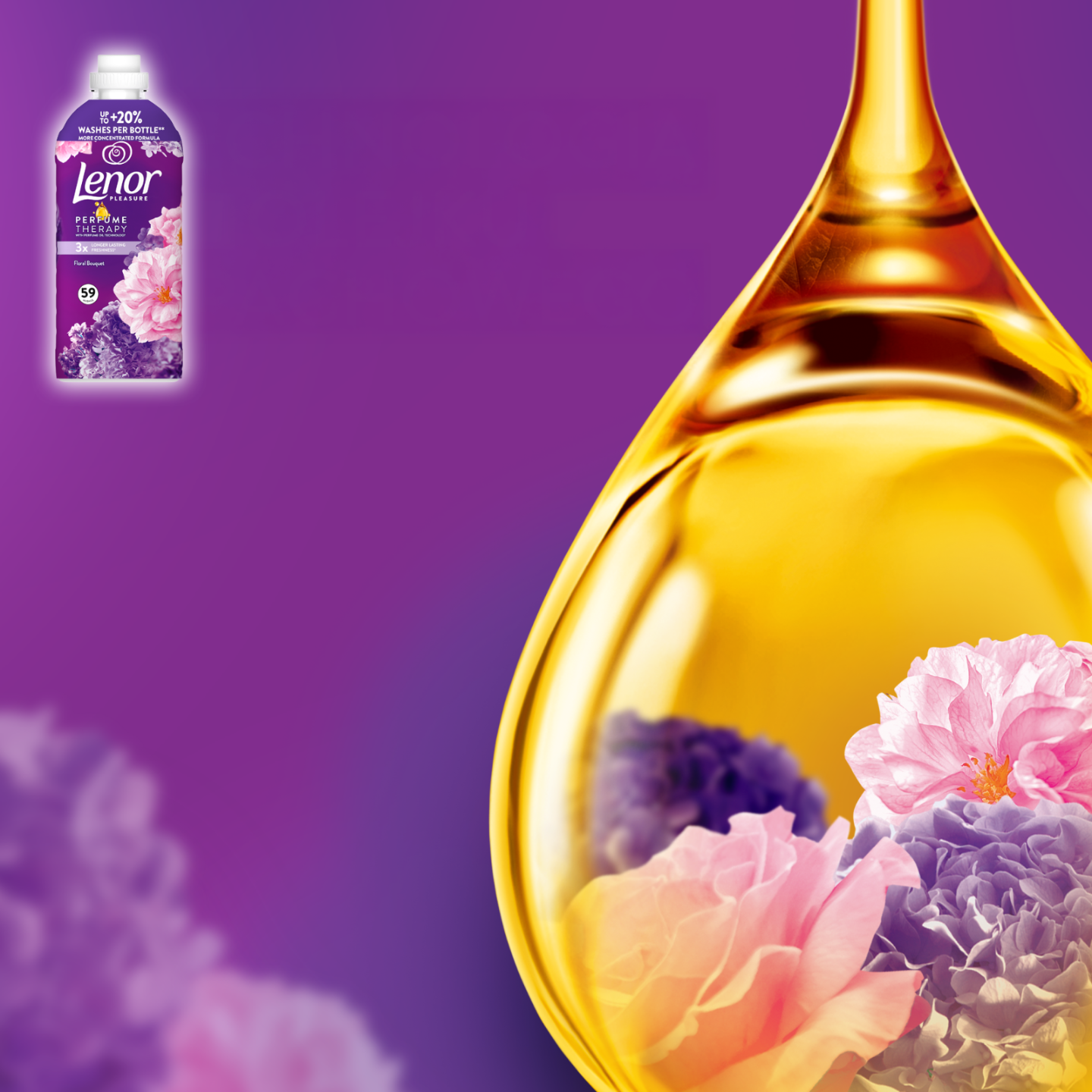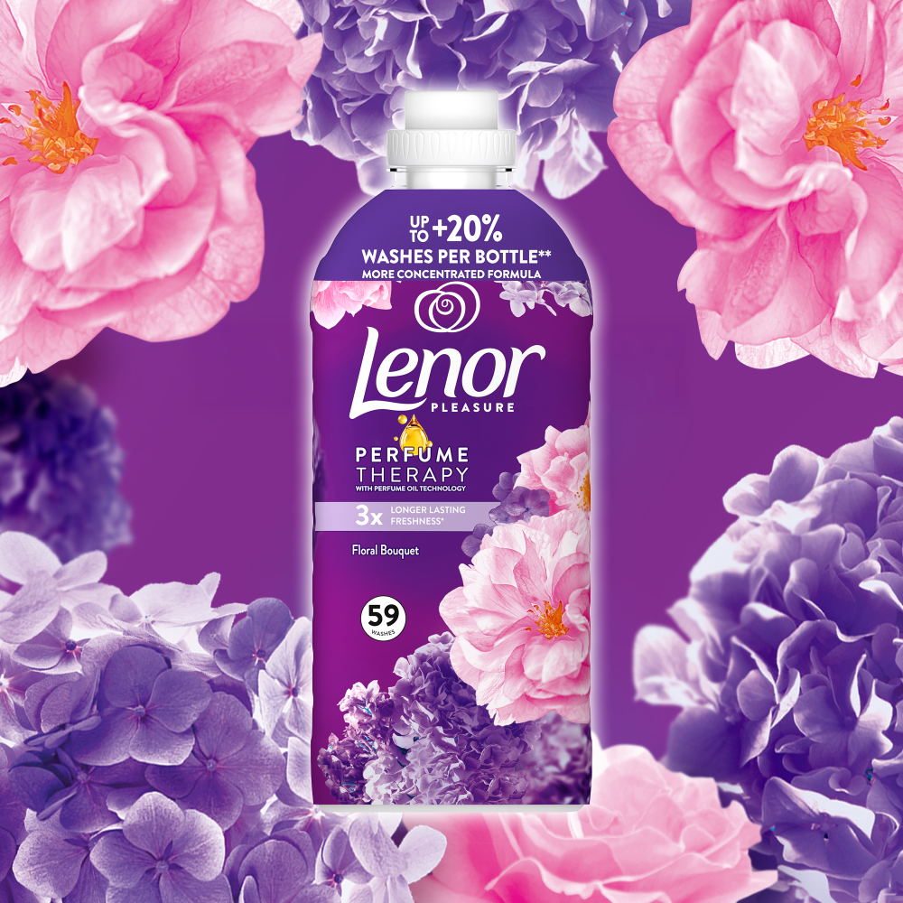 Płyn do płukania tkanin Lenor Floral Bouquet zapewnia 3 razy dłużej utrzymujący się zapach (w porównaniu z Lenor Sensitive) i odrobinę relaksu przez cały dzień. Jego kompozycja zapachowa zawiera odrobinę olejków eterycznych. Czerp przyjemność z życia. Kwiatowe akcenty frezji oraz odrobina pikantnego, orientalnego szafranu dodają smaku każdej chwili. Wypróbuj razem z dopasowanym zapachem Lenor, aby uzyskać zniewalającą miękkość i świeżość.