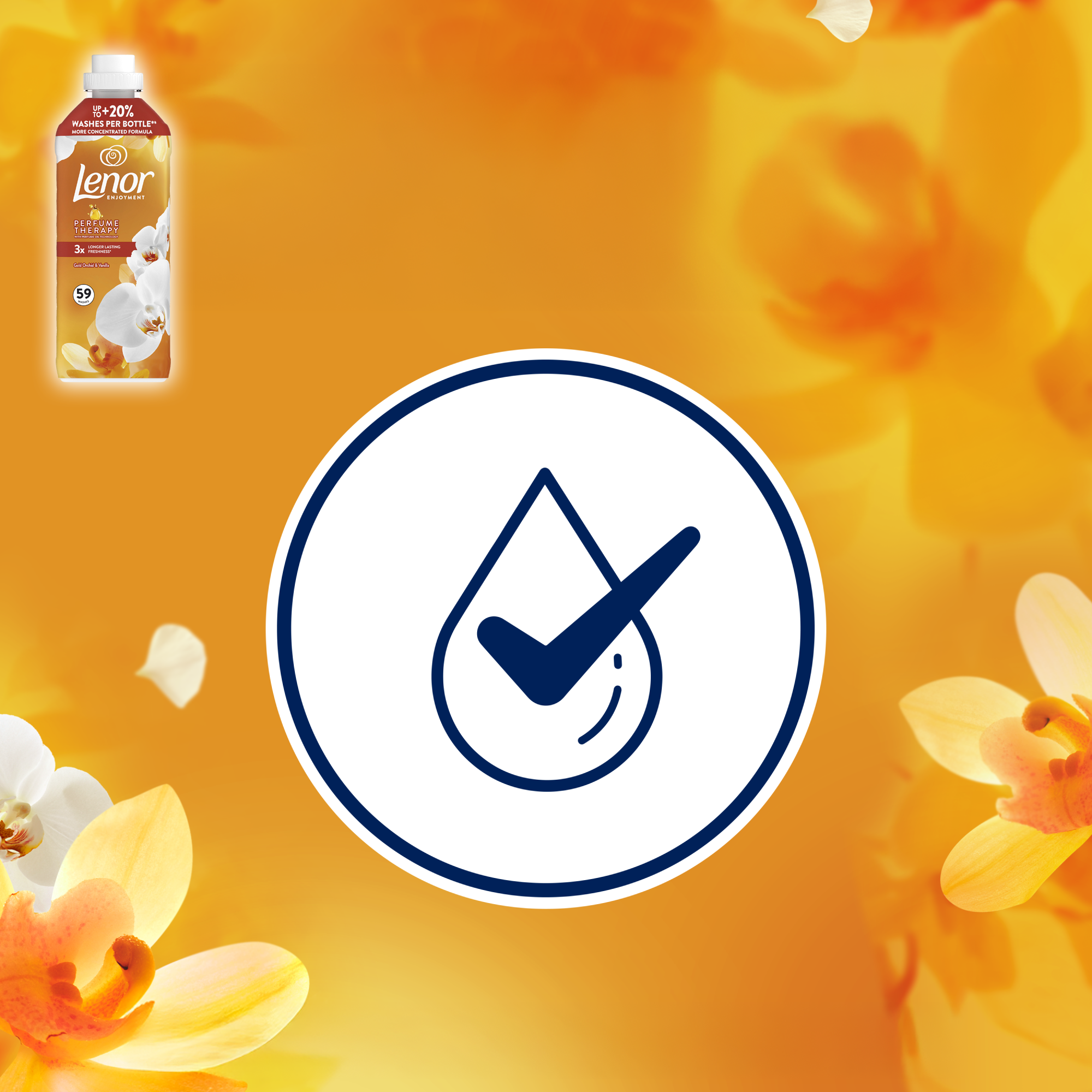 Dzięki technologii olejku zapachowego płyn do płukania tkanin Lenor Orchid & Vanilla zapewnia nawet 3 razy więcej długotrwałej świeżości w porównaniu z płynem Lenor Sensitive.