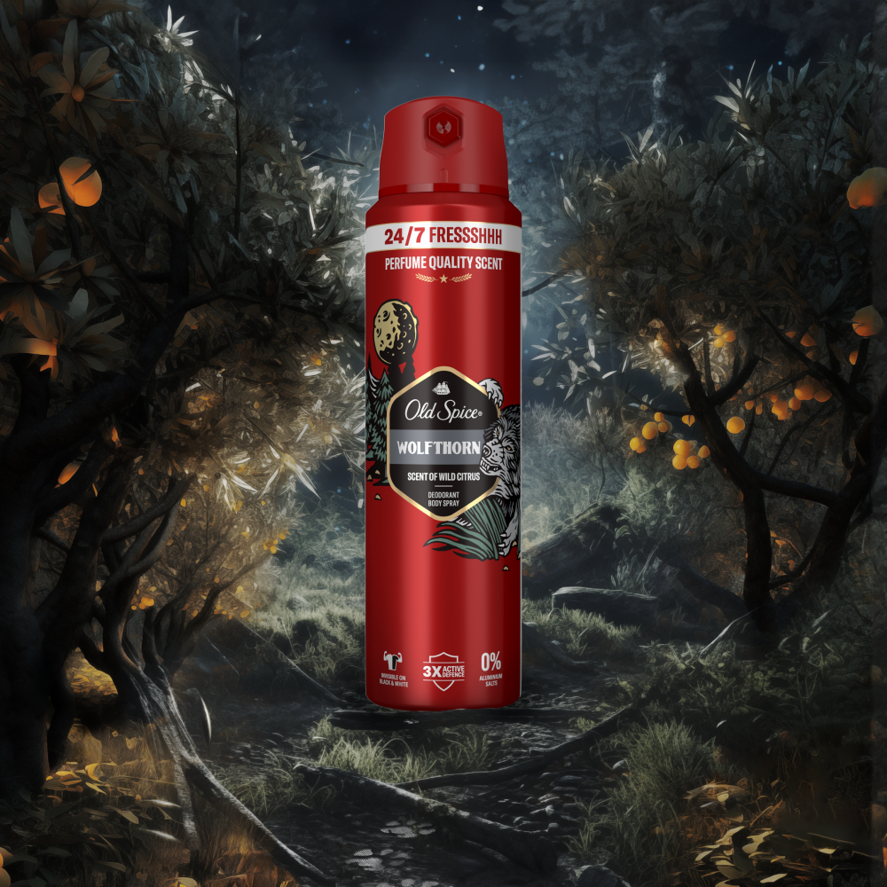 Old Spice Wolfthorn o świeżym, długotrwałym zapachu orzeźwiających pomarańczy i owoców tropikalnych nie pozwoli o Tobie zapomnieć i sprawi, że staniesz się swoistym centrum wszechświata