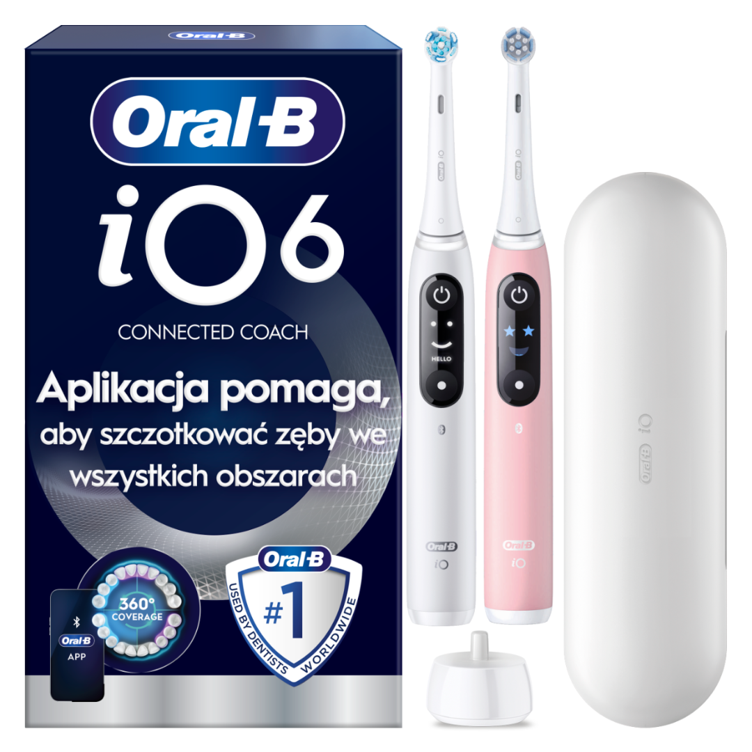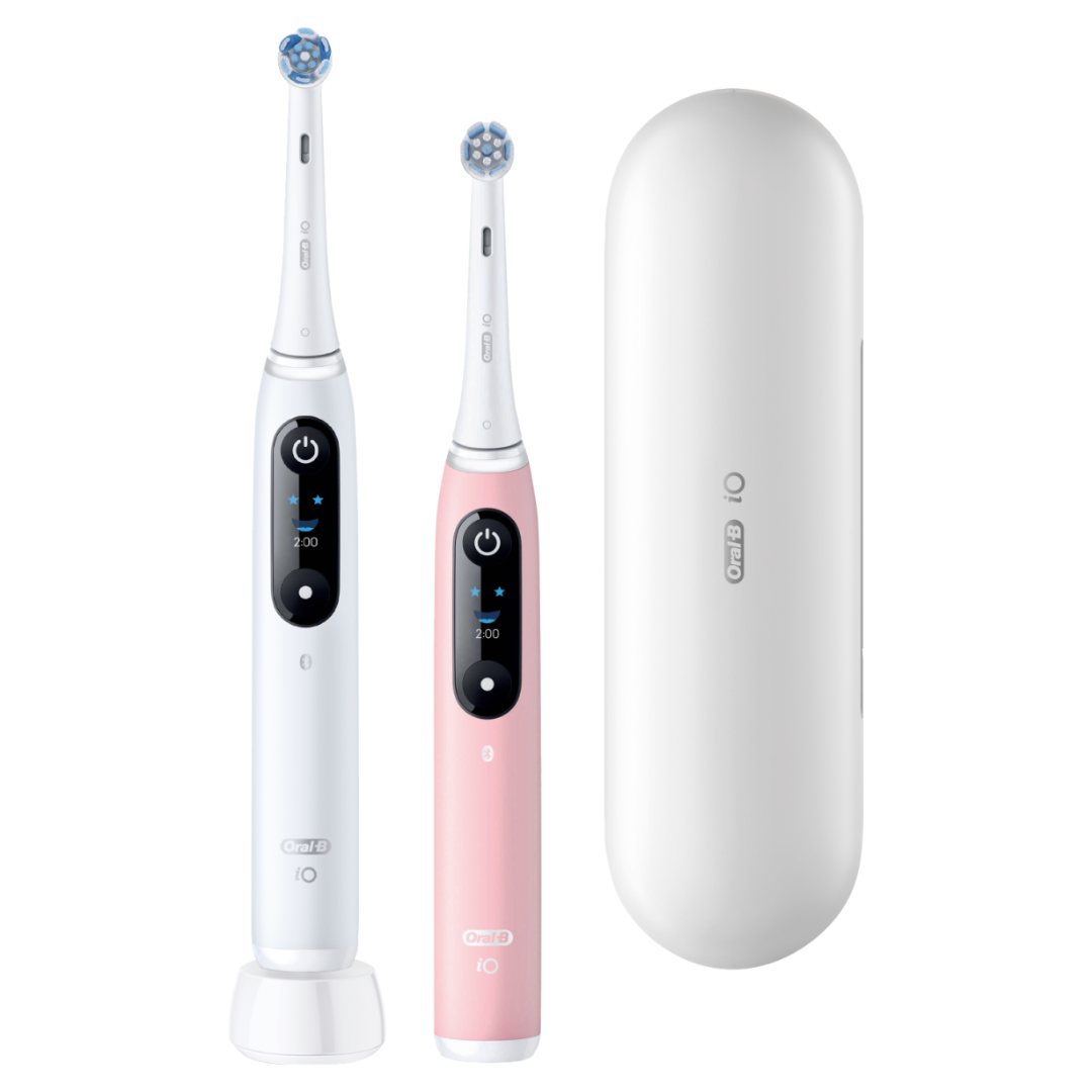Oral-B iO 6 Szczoteczka Elektryczna | 2-Pak | Biała & Różowa | 2 Końcówki | Etui Podróżne Premium