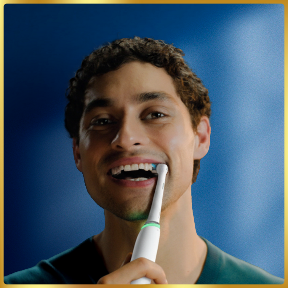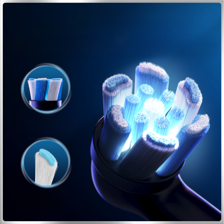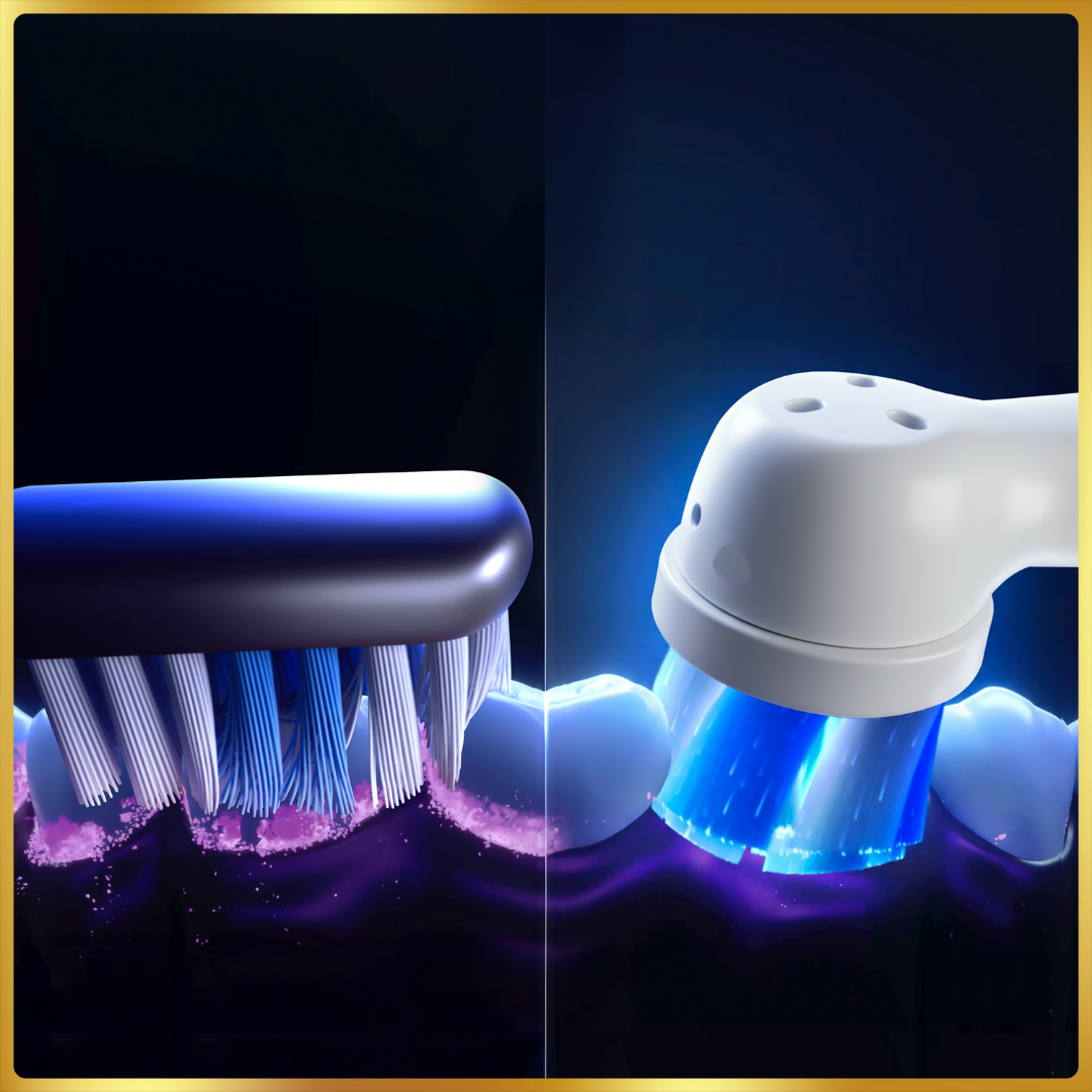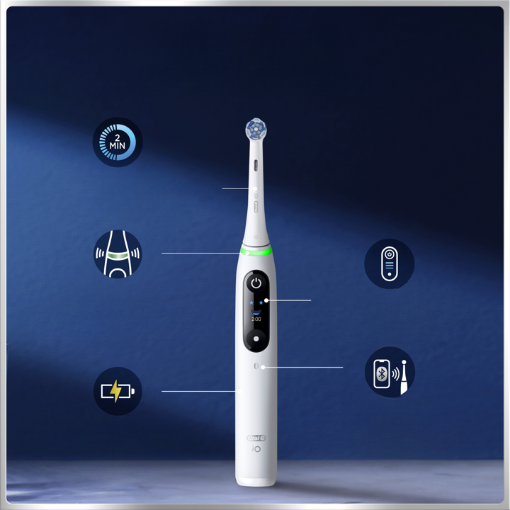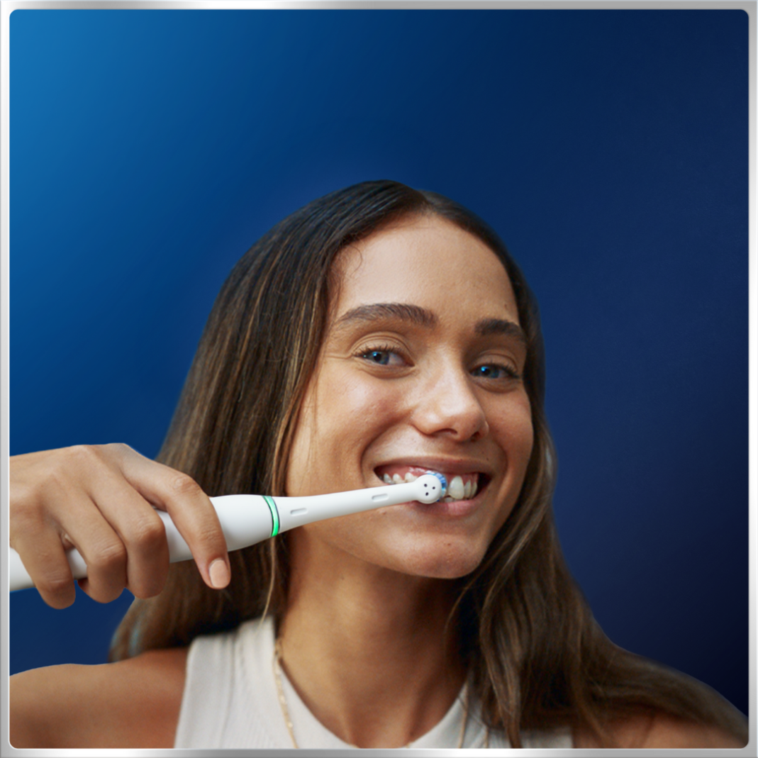 Szczoteczka elektryczna iO 6 wyposażona w najlepszą technologię czyszczenia Oral-B łączy delikatne mikrowibracje włókien z unikalną okrągłą końcówką szczoteczki, zaprojektowaną we współpracy z dentystami, aby zapewnić profesjonalne szczotkowanie każdego dnia.