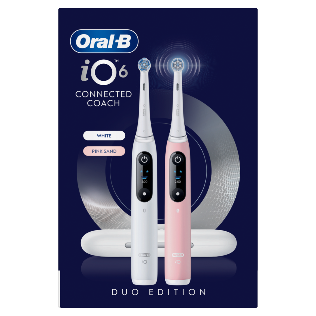 Oral-B iO 6 Szczoteczka Elektryczna | 2-Pak | Biała & Różowa | 2 Końcówki | Etui Podróżne Premium