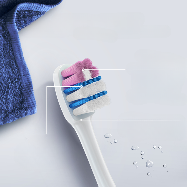 ELEMENTY PRECYZYJNE obejmują małą główkę, która zapewnia łatwy dostęp do wszystkich obszarów jamy ustnej i włókna z wieloma końcówkami