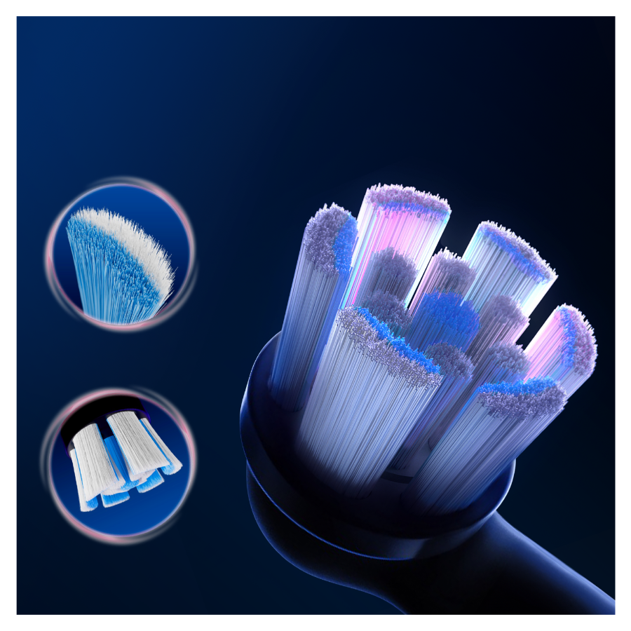 • WŁÓKNA ZMIENIAJĄCE KOLOR: Wymienne końcówki do szczoteczek Oral-B mają zmieniające kolor włókna, które sygnalizują, kiedy należy wymienić końcówkę szczoteczki, aby zapewnić sobie maksymalną czystość