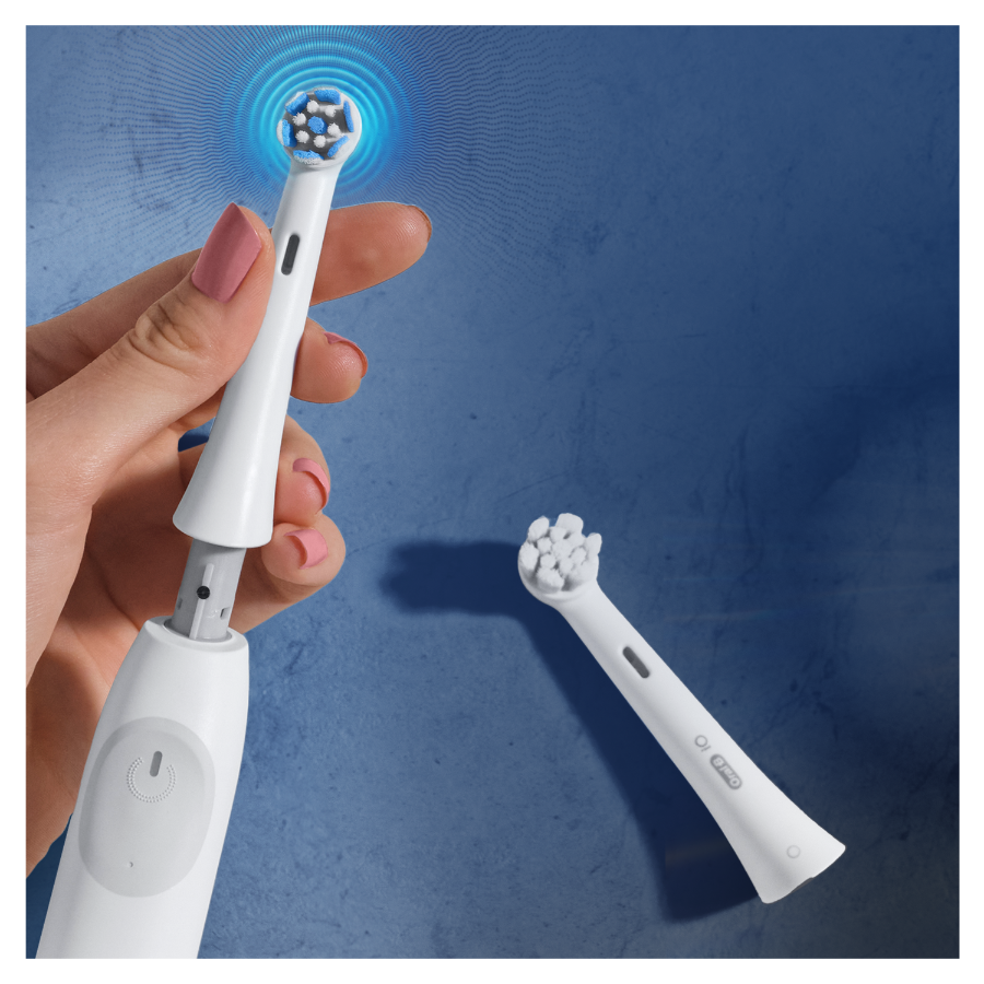 Ponieważ dentyści zalecają wymianę końcówki szczoteczki co 3 miesiące w celu uzyskania najlepszych rezultatów, wymienne końcówki szczoteczek Oral-B mają zmieniające kolor włókna, które sygnalizują, że nadszedł czas na wymianę. Uzyskaj najwyższą moc czyszczenia dzięki jedynej końcówce wymiennej zaprojektowanej specjalnie z myślą o szczoteczce elektrycznej Oral-B iO i zapewniającej optymalne dopasowanie do niej.