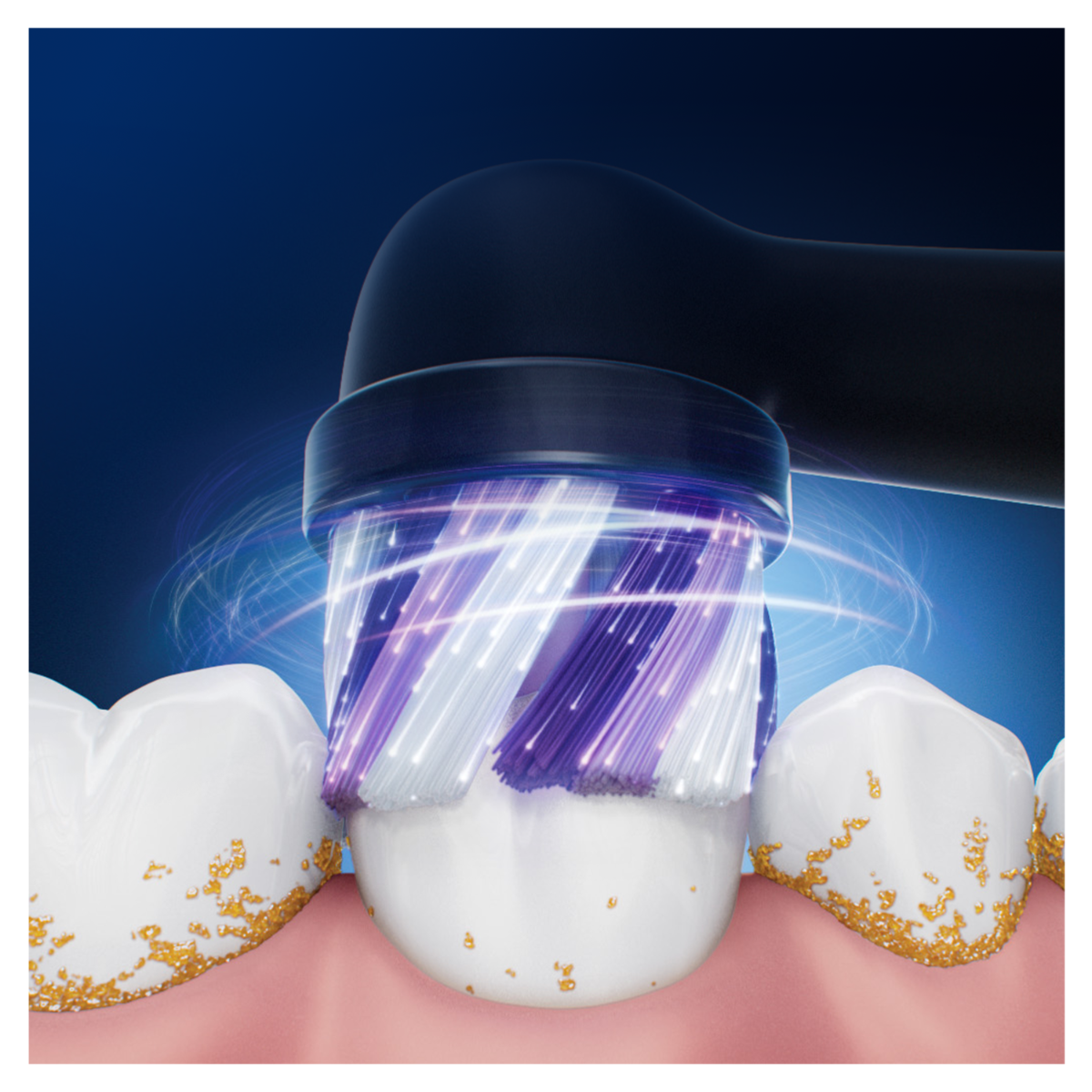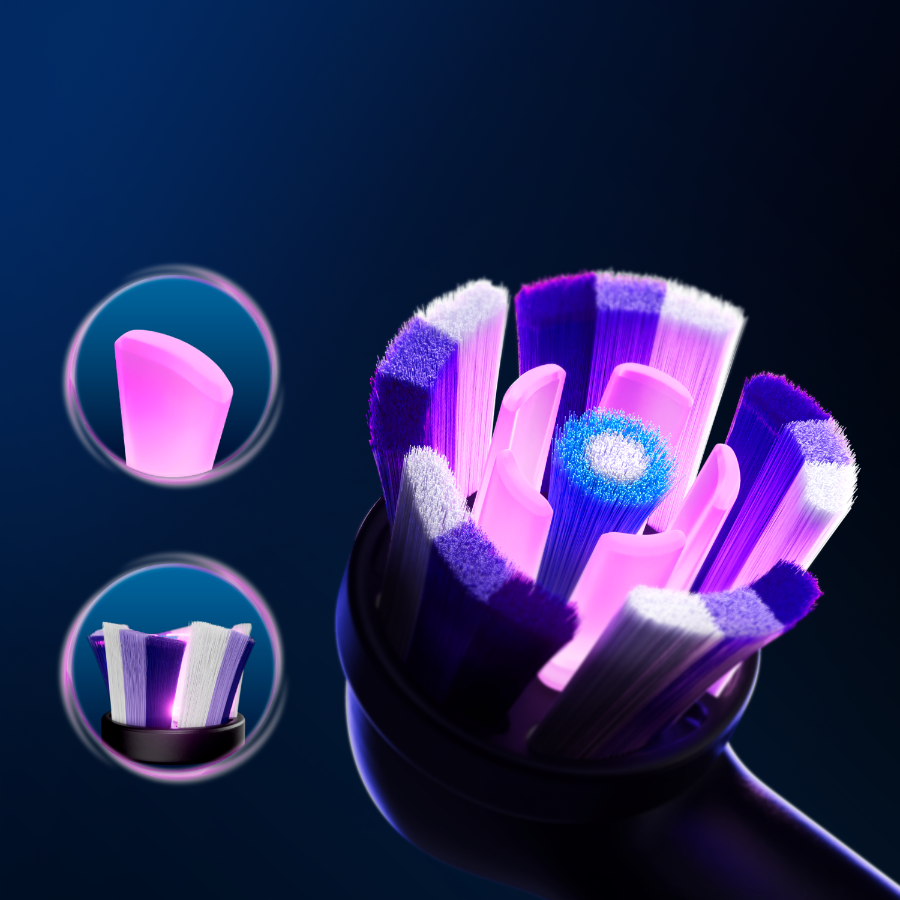 - POSTRZĘPIONE WŁÓKNA: Wymienne końcówki do szczoteczek Oral-B mają postrzępione włókna, które sygnalizują, kiedy należy wymienić końcówkę szczoteczki, aby zapewnić sobie maksymalną czystość