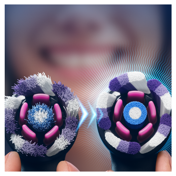 - POSTRZĘPIONE WŁÓKNA: Wymienne końcówki do szczoteczek Oral-B mają postrzępione włókna, które sygnalizują, kiedy należy wymienić końcówkę szczoteczki, aby zapewnić sobie maksymalną czystość