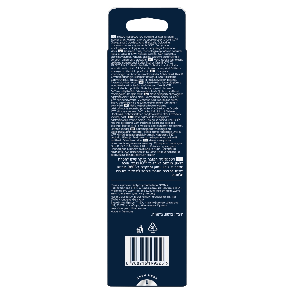 WYŁĄCZNIE DO RĄCZEK SZCZOTECZEK Oral-B iO: Uzyskaj najwyższą moc czyszczenia dzięki jedynej końcówce wymiennej zaprojektowanej specjalnie z myślą o szczoteczce elektrycznej Oral-B iO i zapewniającej optymalne dopasowanie do niej