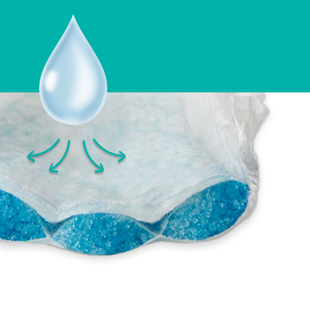 Wyobraź sobie, jak intensywnie dzieci odczuwają wszystko w swoim świecie. Pomyśl więc, jak niewygodna musi być dla nich mokra pieluszka. Dlatego pieluszki Pampers mają dodatkową warstwę, która szybko wchłania wilgoć, aby skóra dziecka była sucha i chroniona przez 12 godzin. Aby dziecko miało sucho i wygodnie przez całą noc i cały dzień.