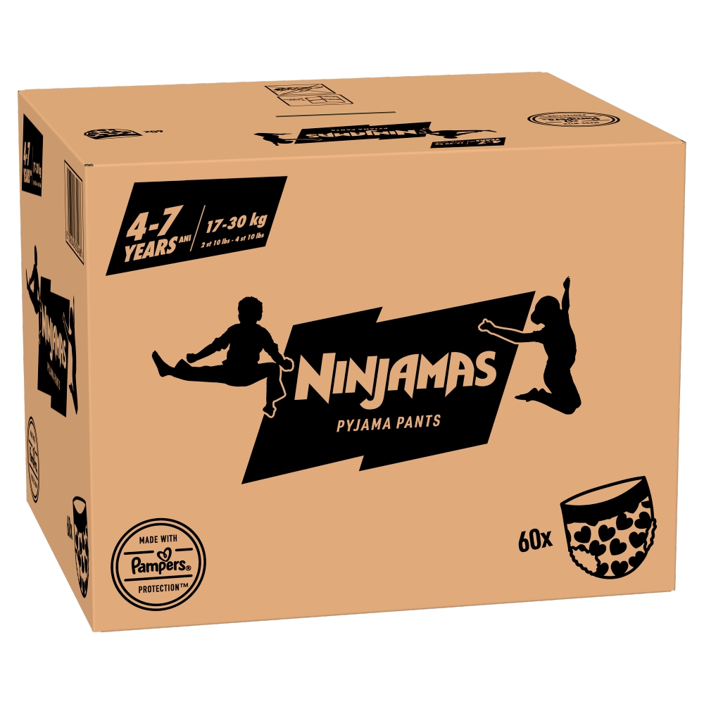 Ninjamas w Serduszka pieluchomajtki chłonna bielizna na noc dla dzieci, 60 szt, 4-7 lat, 17kg-30kg