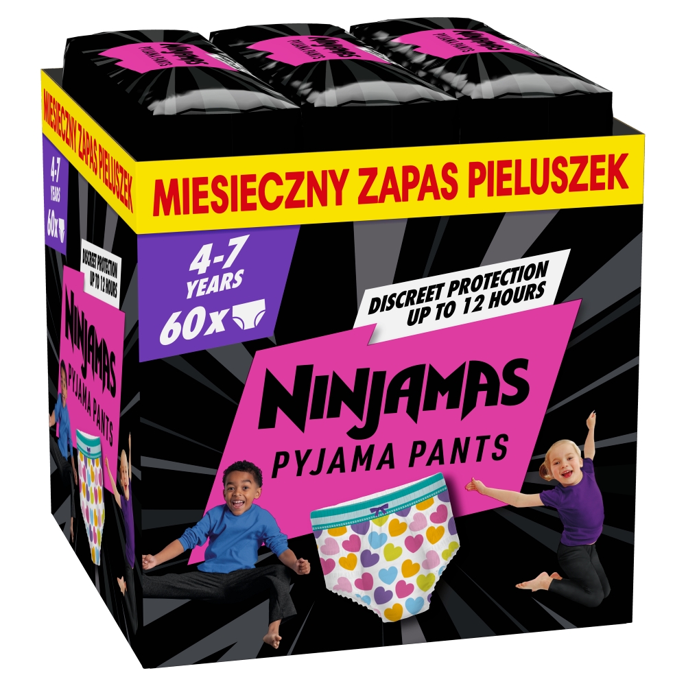 Ninjamas w Serduszka pieluchomajtki chłonna bielizna na noc dla dzieci, 60 szt, 4-7 lat, 17kg-30kg
