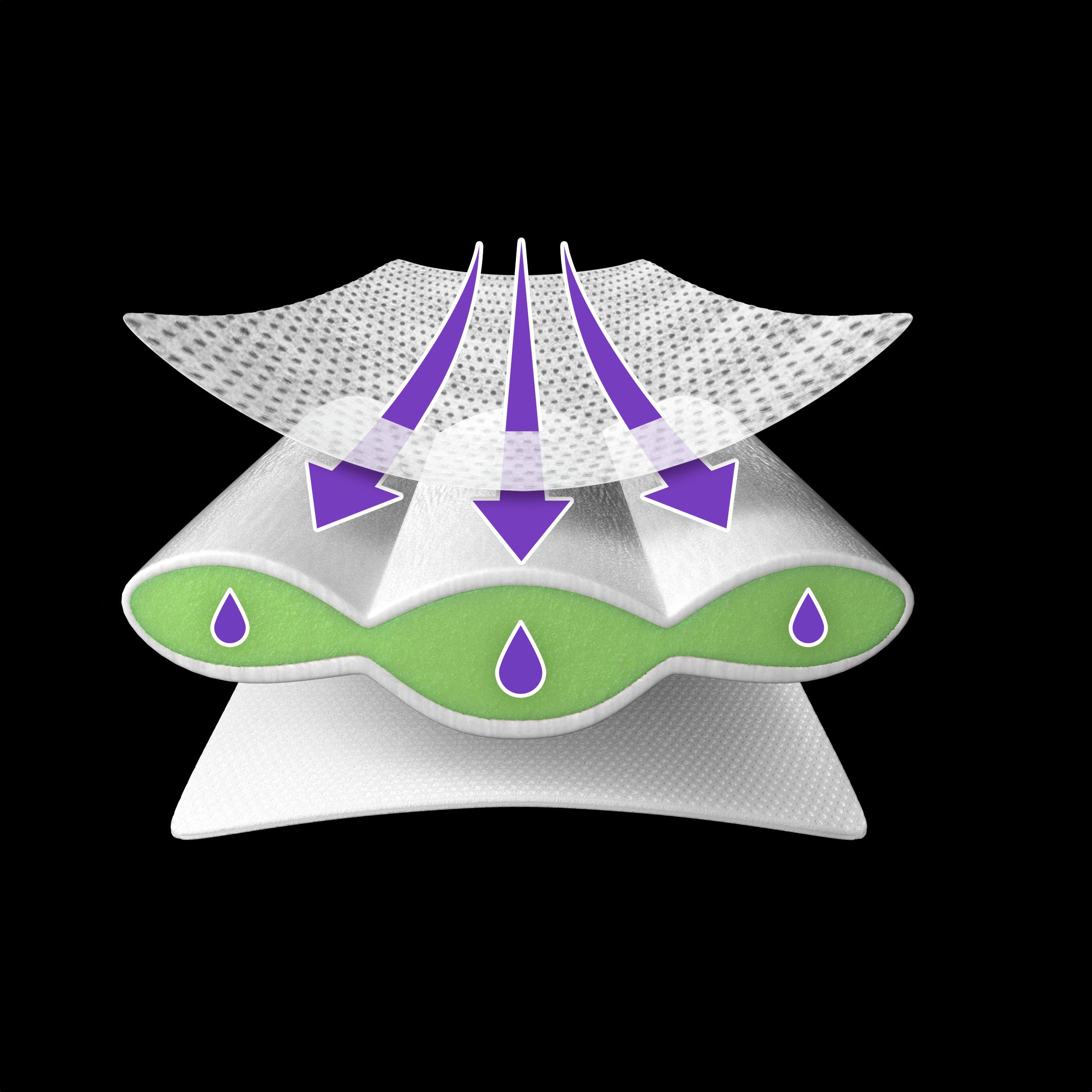 Technologia błyskawicznego wchłaniania od Pampers natychmiast wchłania wilgoć, zapewniając skuteczną ochronę oraz suchość