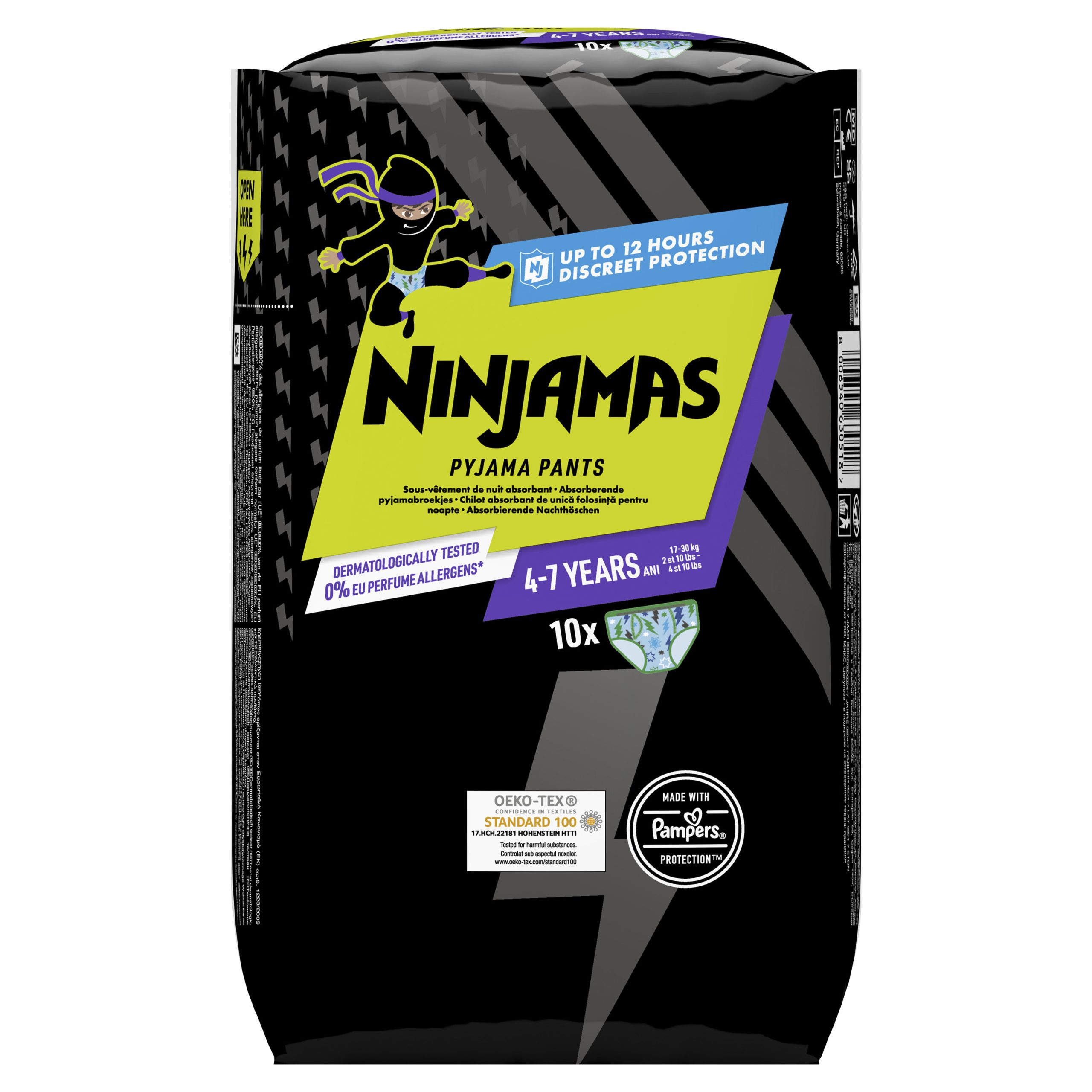 Zarówno dla Ciebie, jak i dla nas dobro dziecka jest najważniejsze. Pieluchomajtki Ninjamas zostały przebadane dermatologicznie i nie zawierają substancji uznawanych za alergeny zapachowe w UE (zgodnie z rozporządzeniem UE nr 1223/2009 dotyczącym produktów kosmetycznych) oraz uzyskały certyfikat OEKO-TEX Standard 100.