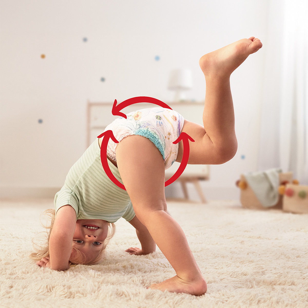 Z czasem Twoje dziecko staje się aktywniejsze, dlatego tak ważne jest zapewnienie mu elastycznych pieluszek, które gwarantują komfortowe dopasowanie i niezawodną ochronę.