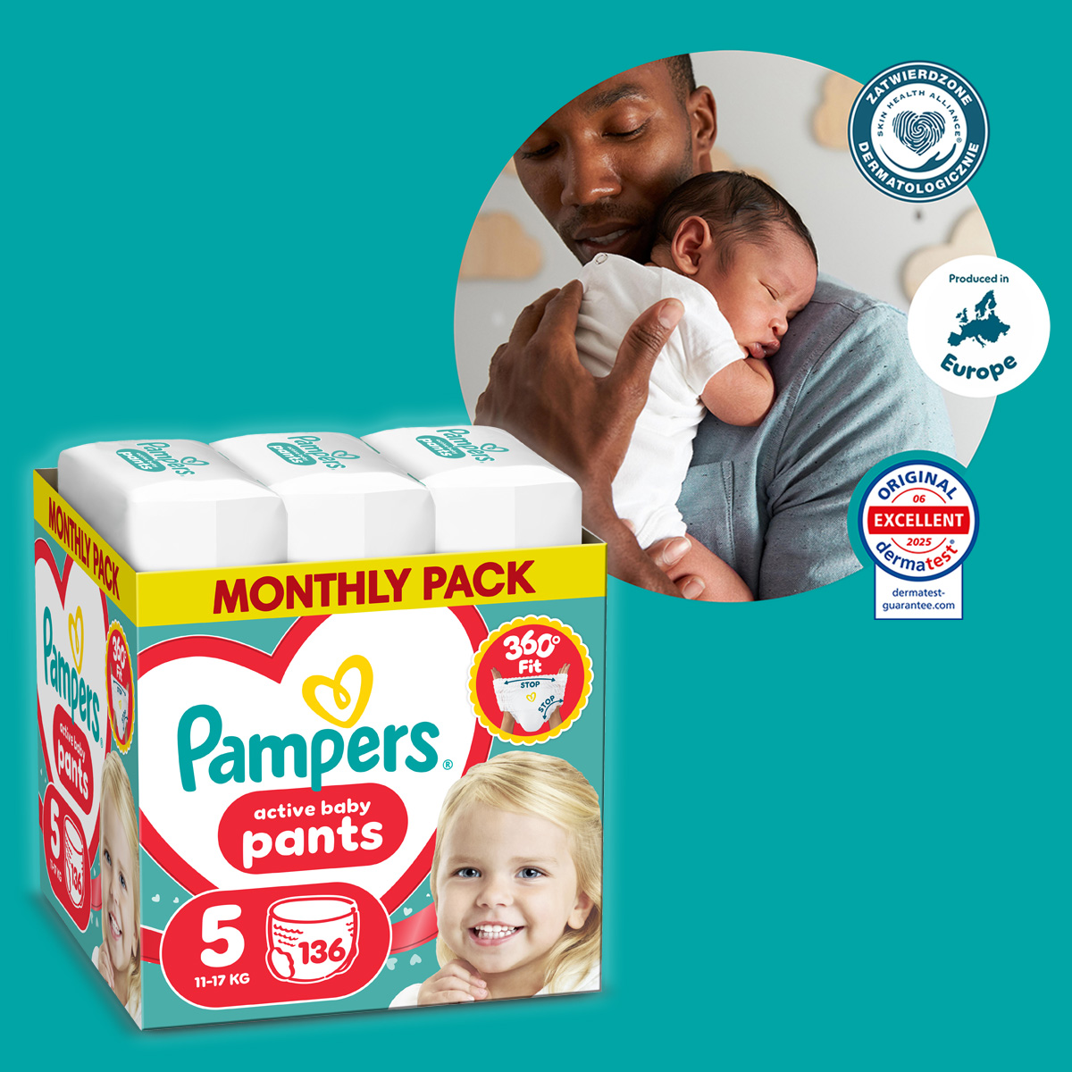 Pampers Active Baby Monthly box Pieluchomajtki Rozmiar 5, 136 szt., 11-17kg