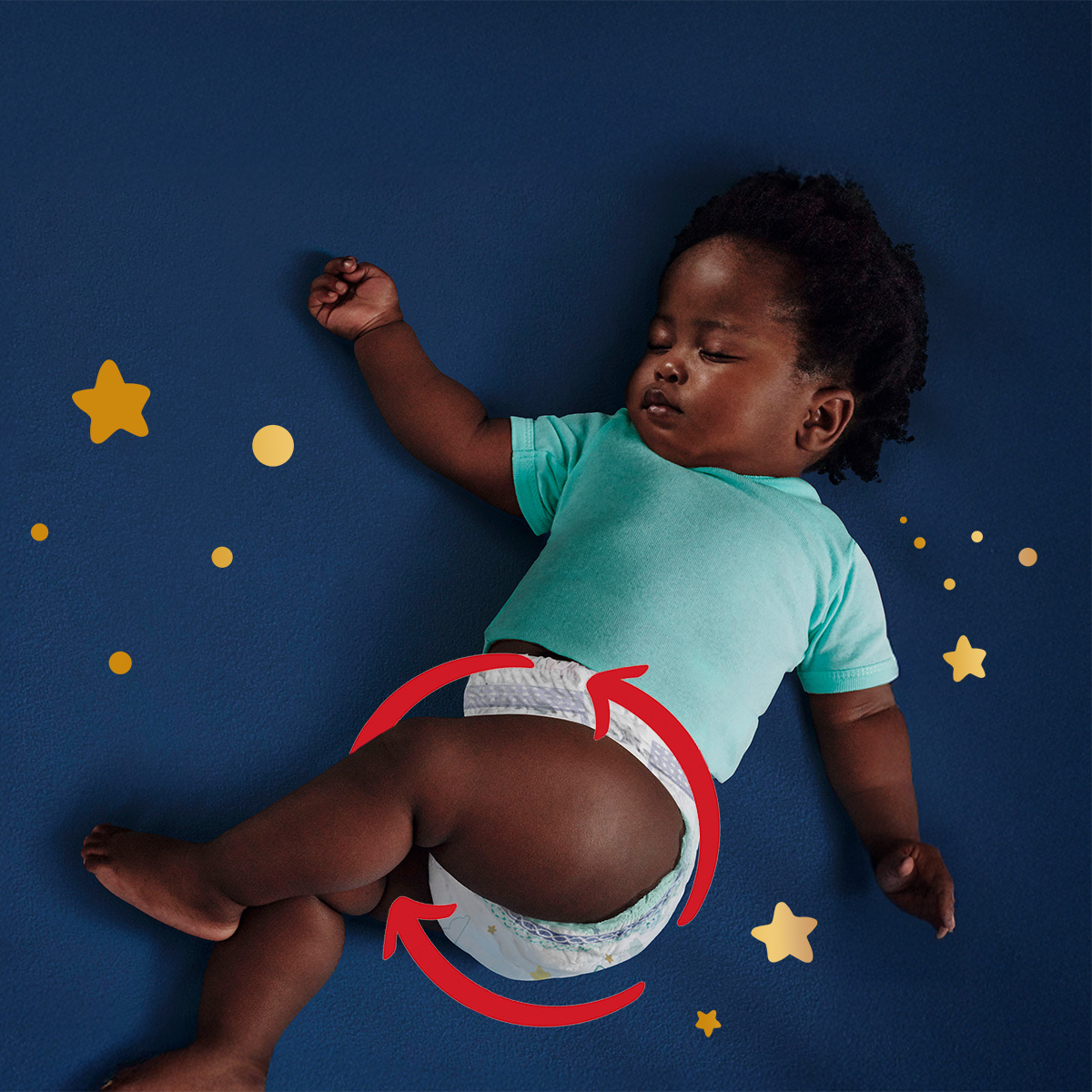 Najbardziej chłonne pieluchomajtki Pampers zapewniają nawet 100% ochrony przed przeciekaniem przez całą noc