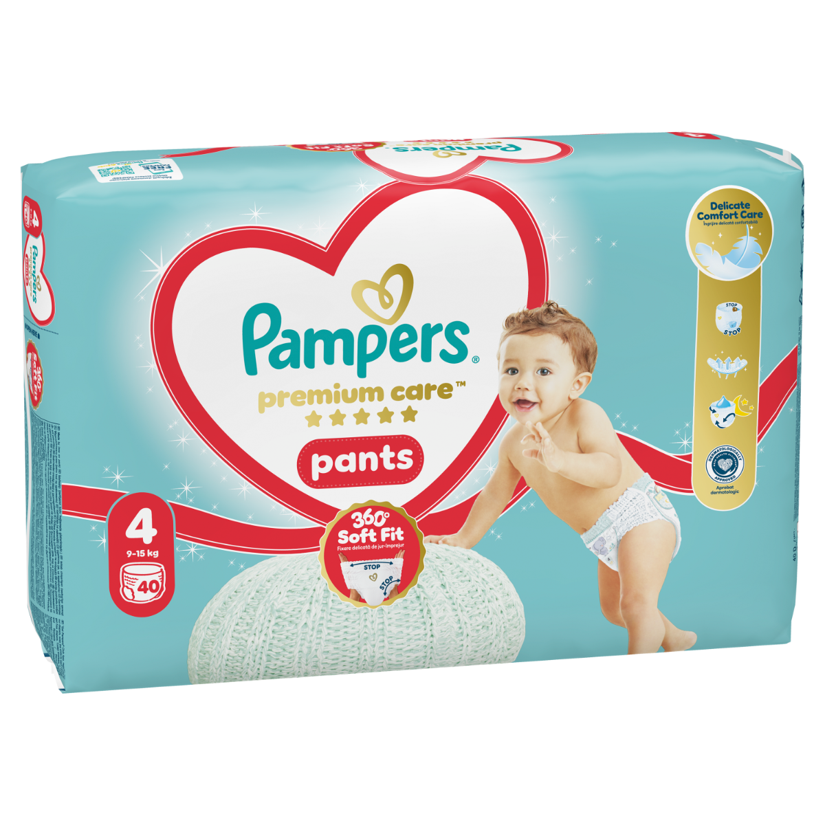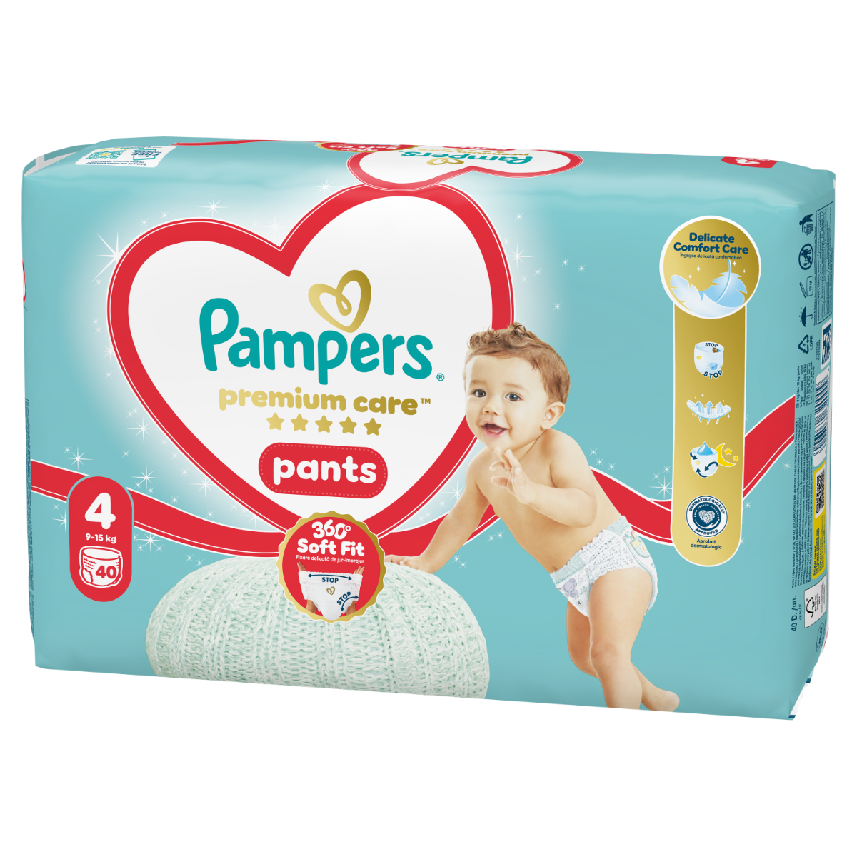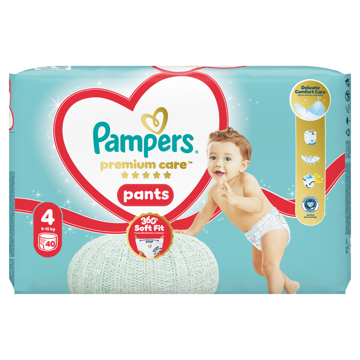 Podaruj swojemu dziecku optymalny komfort skóry i ochronę przed przeciekaniem od Pampers dzięki pieluchomajtkom Pampers Premium Care: osłonki wokół nogawek chronią przed powstawaniem czerwonych śladów i przeciekaniem, ultramiękka, elastyczna taśma wokół talii dostosowuje się do ciała aktywnego maluszka, który zaczyna poznawać otaczający go świat, a unikalna kieszonka Stop & Protect zapobiega przeciekaniu z tyłu.