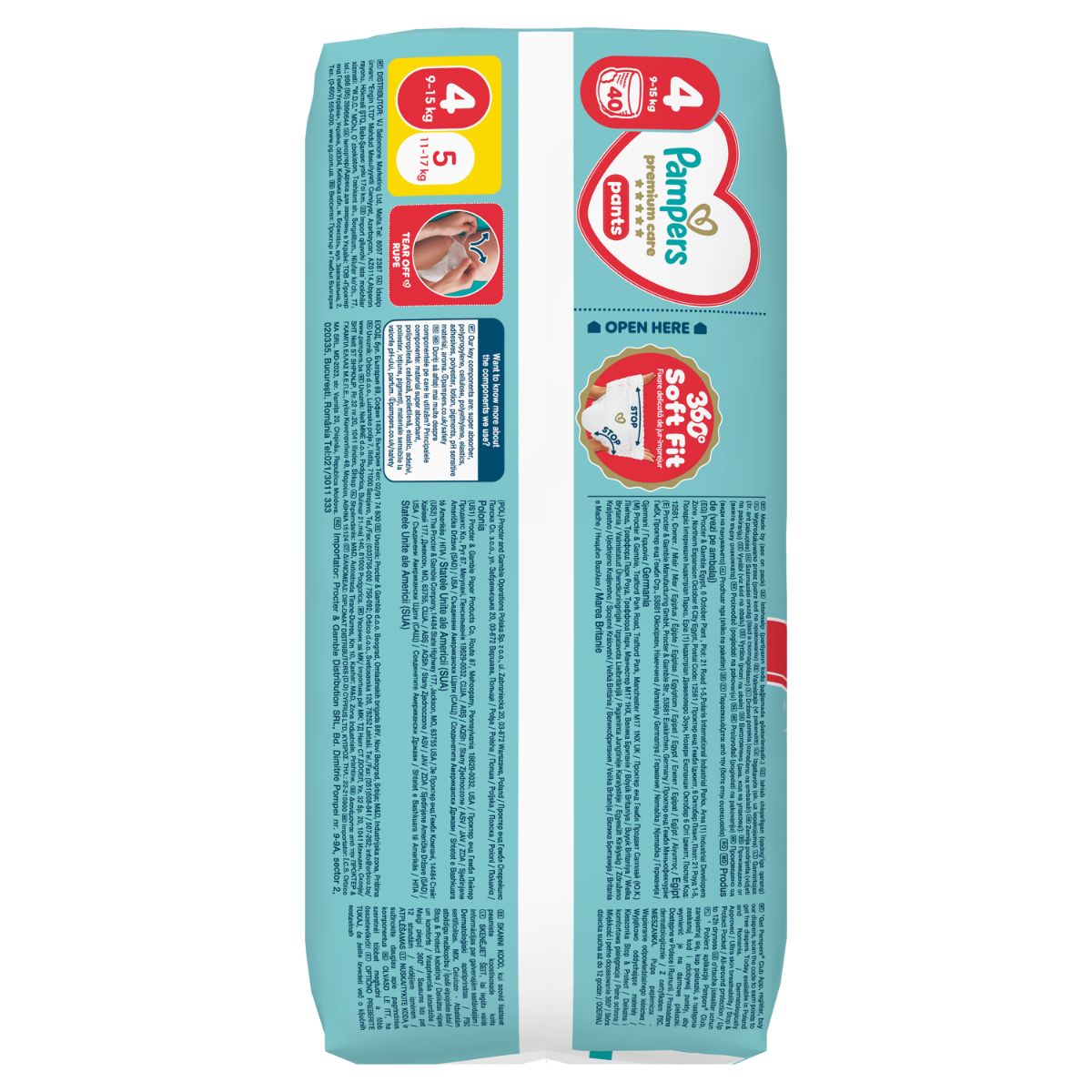 Pampers Premium Care Pieluchomajtki Rozmiar 4, 40 szt., 9kg-15kg