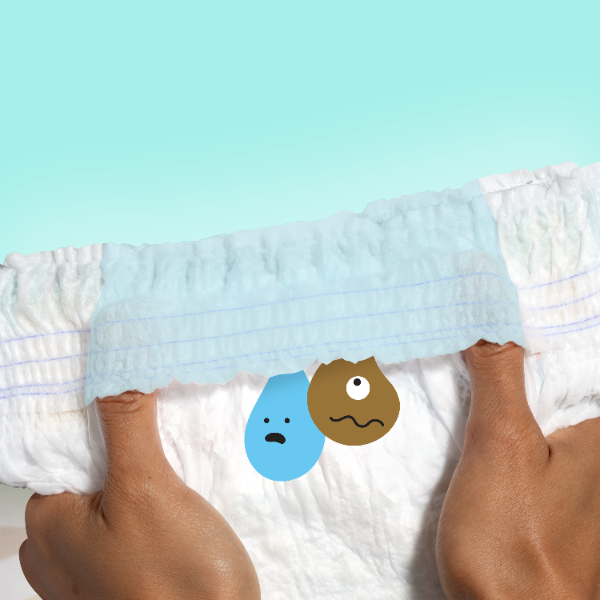 - Miękka osłonka wokół nogawek pomaga zapobiegać przeciekaniu pieluszki przy nóżkach