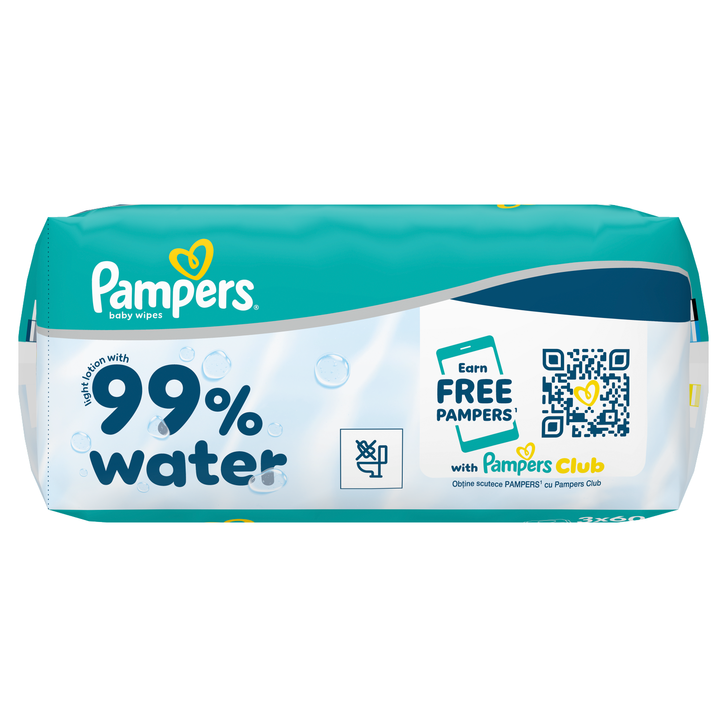 Pampers 99% Water Chusteczki Nawilżane Dla Dzieci, 3×60 Chusteczek = 180szt