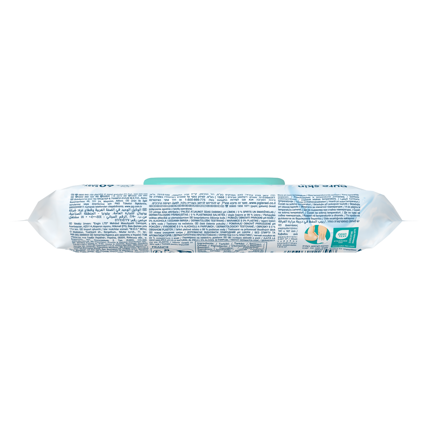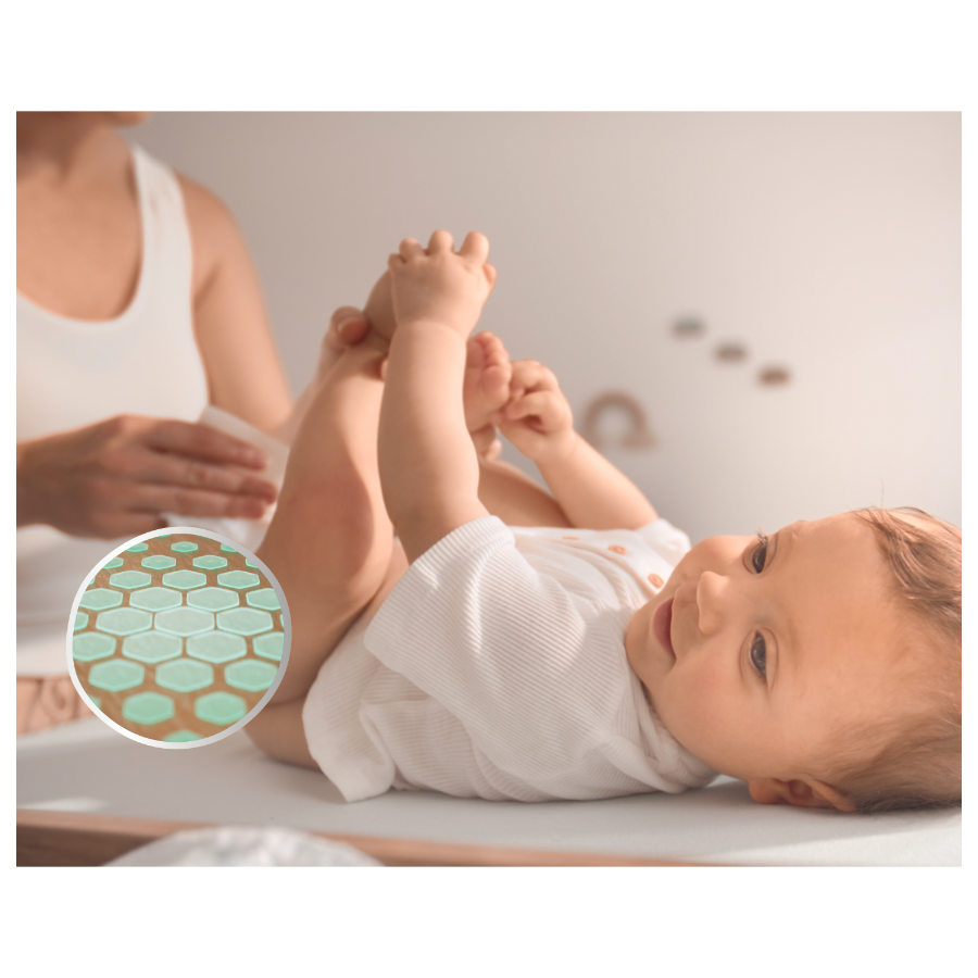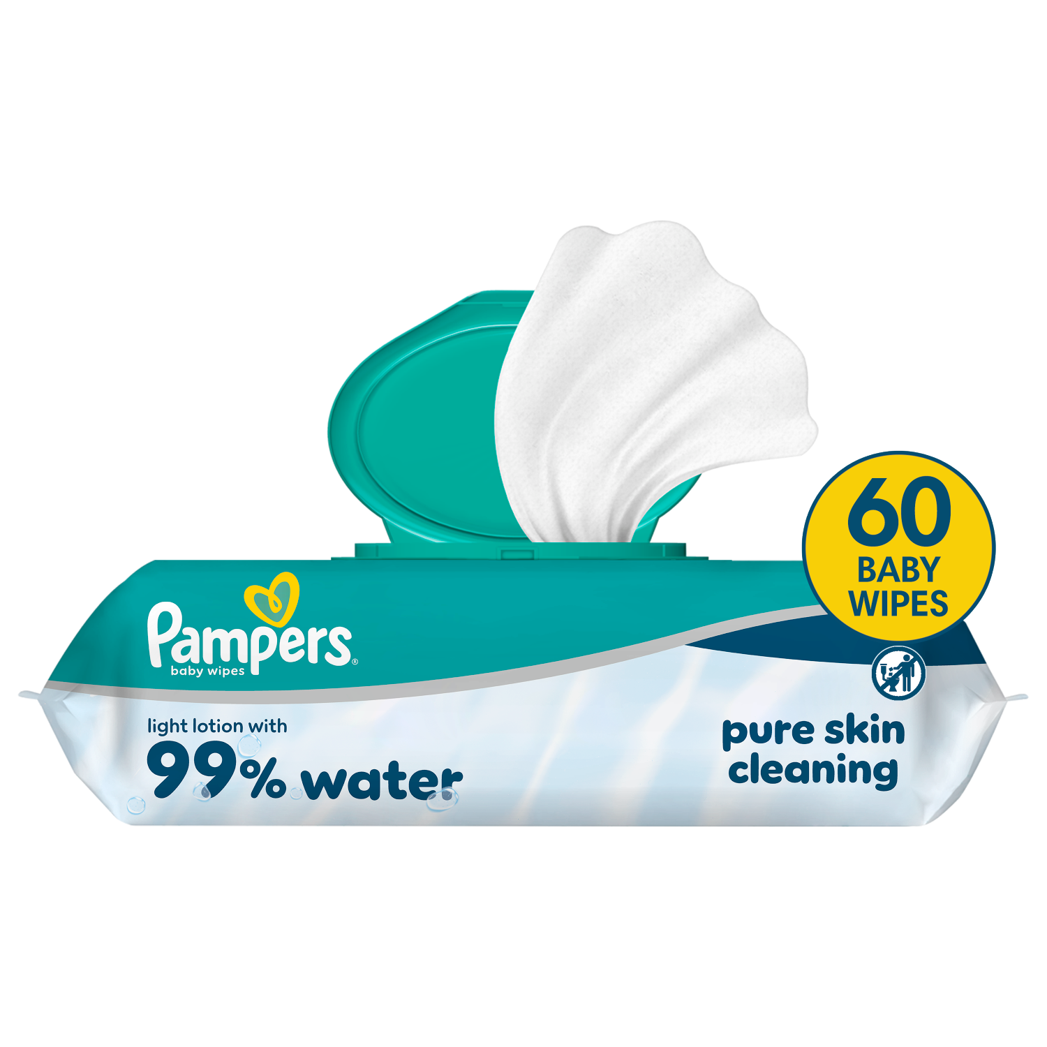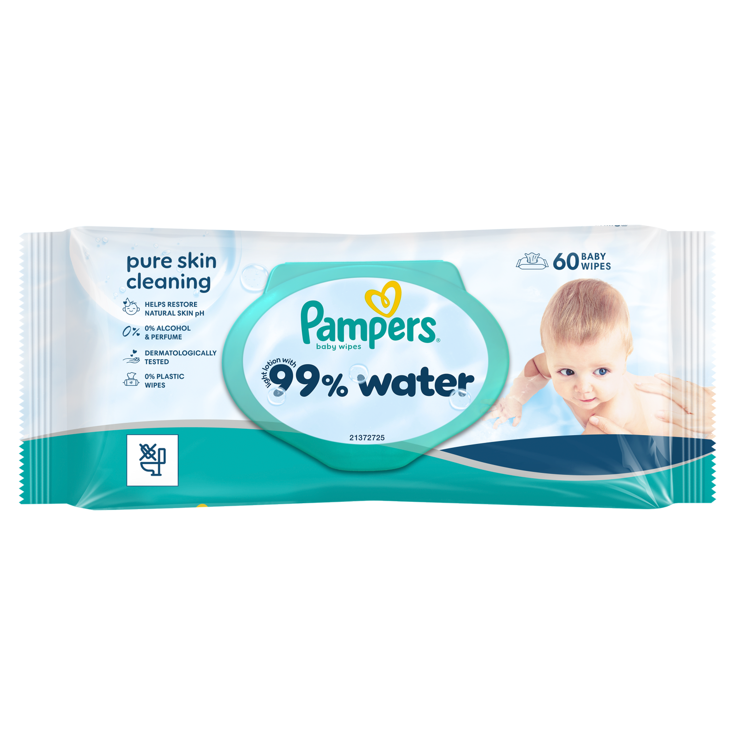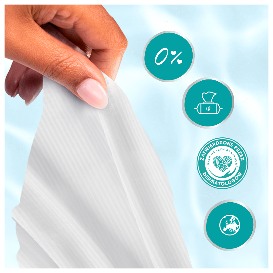Pampers 99% Water – lekki balsam składający się w 99% z wody. Dzięki specjalnej formule, która pomaga przywrócić naturalne pH skóry i chronić ją przed zaczerwienieniem, nasze chusteczki zapewniają delikatne oczyszczanie i pomagają chronić delikatną skórę dziecka.
