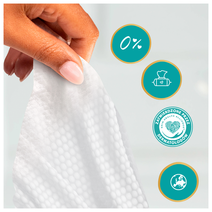 Chusteczki nawilżane dla dzieci Pampers Aqua Soft Touch – najlepsze oczyszczanie i ochrona skóry od Pampers. Miękkie chusteczki z balsamem składającym się w 99% z wody delikatnie czyszczą i pomagają chronić delikatną skórę dziecka. Dzięki specjalnej formule chusteczki pomagają przywrócić naturalne pH skóry i chronić ją przed zaczerwienieniem. Nie zawierają alkoholu ani substancji zapachowych. Formuła została przetestowana dermatologicznie. Zatwierdzona przez dermatologów z organizacji Skin Health Alliance.