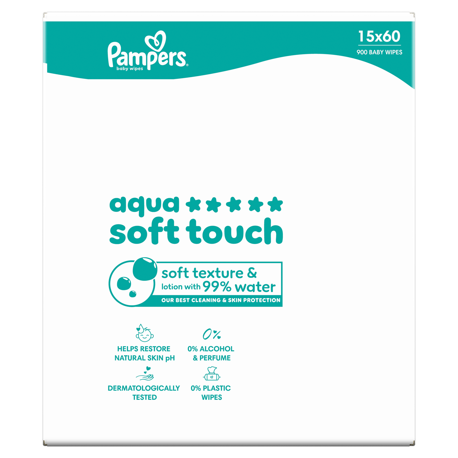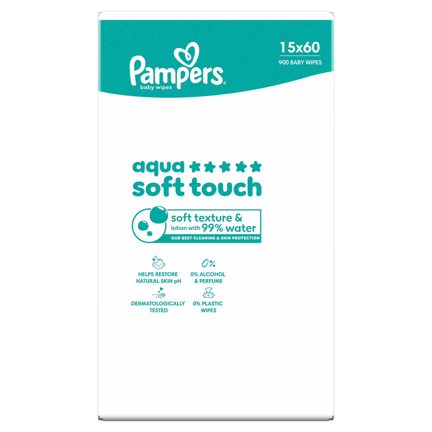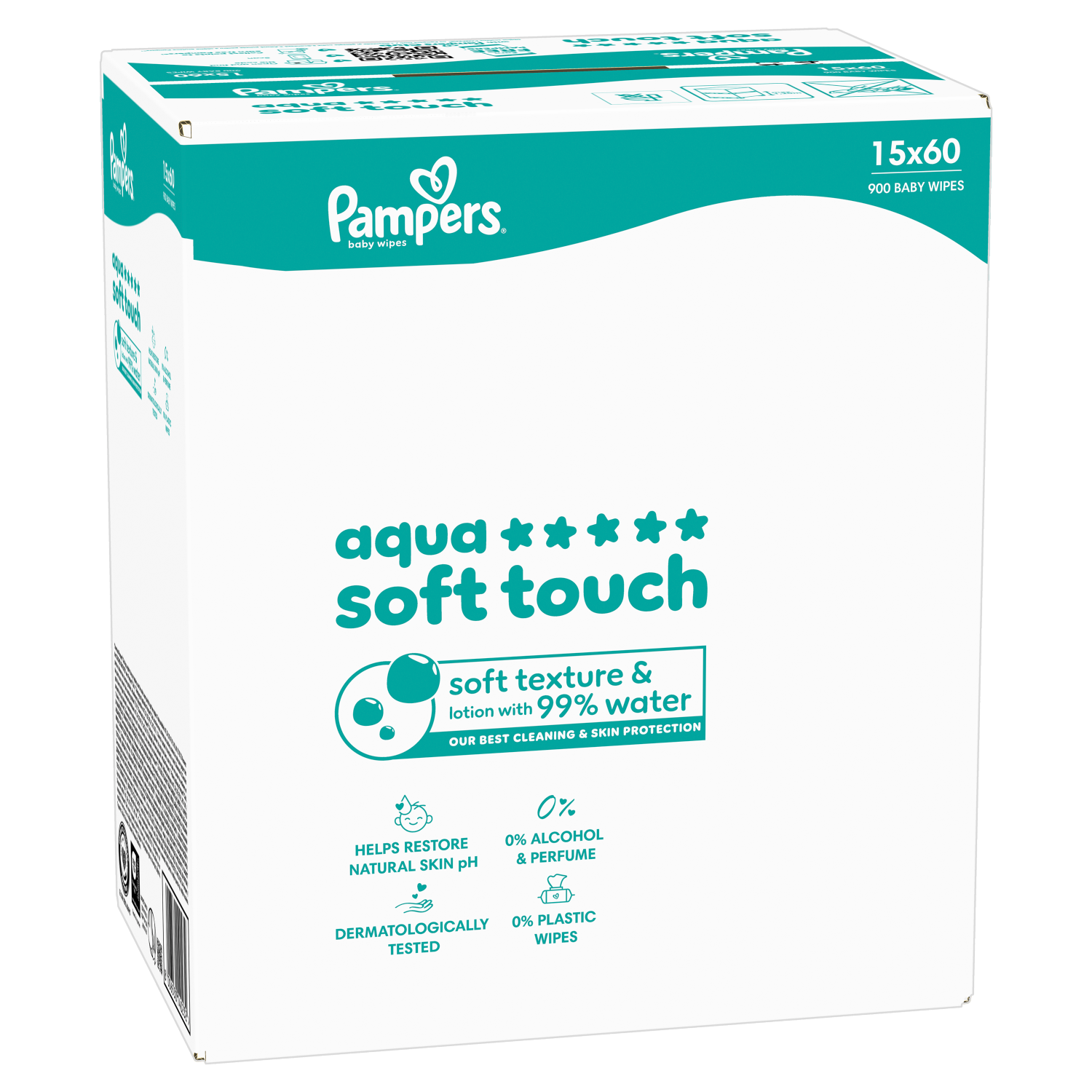 Pampers Aqua Soft Touch Chusteczki Nawilżane Dla Dzieci, 15 Opakowań po 60 Chusteczek = 900 sztuk
