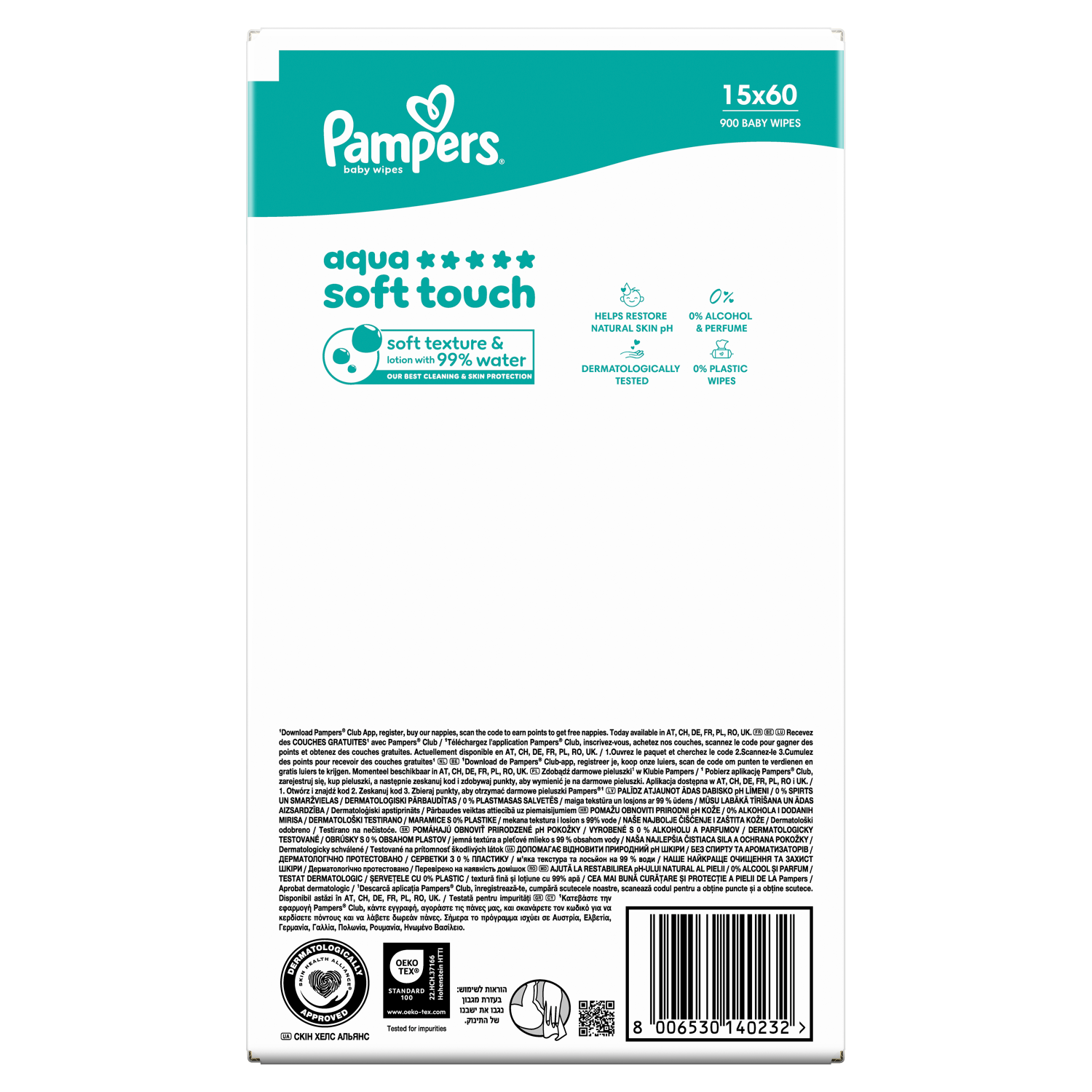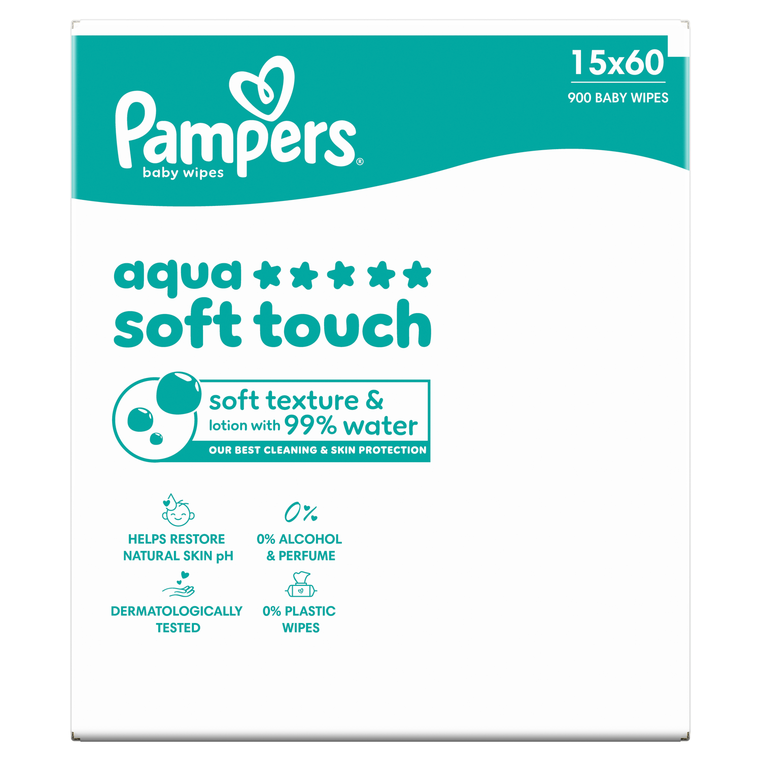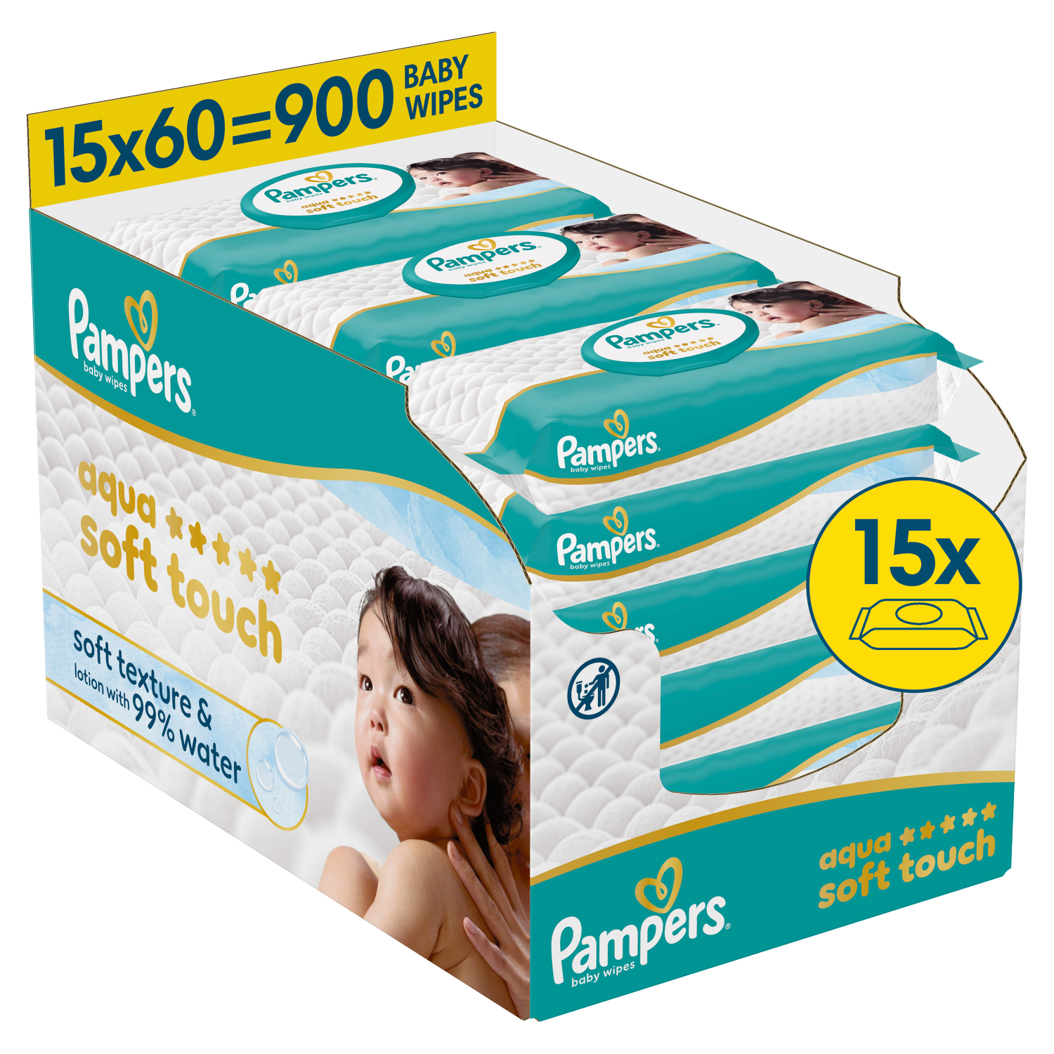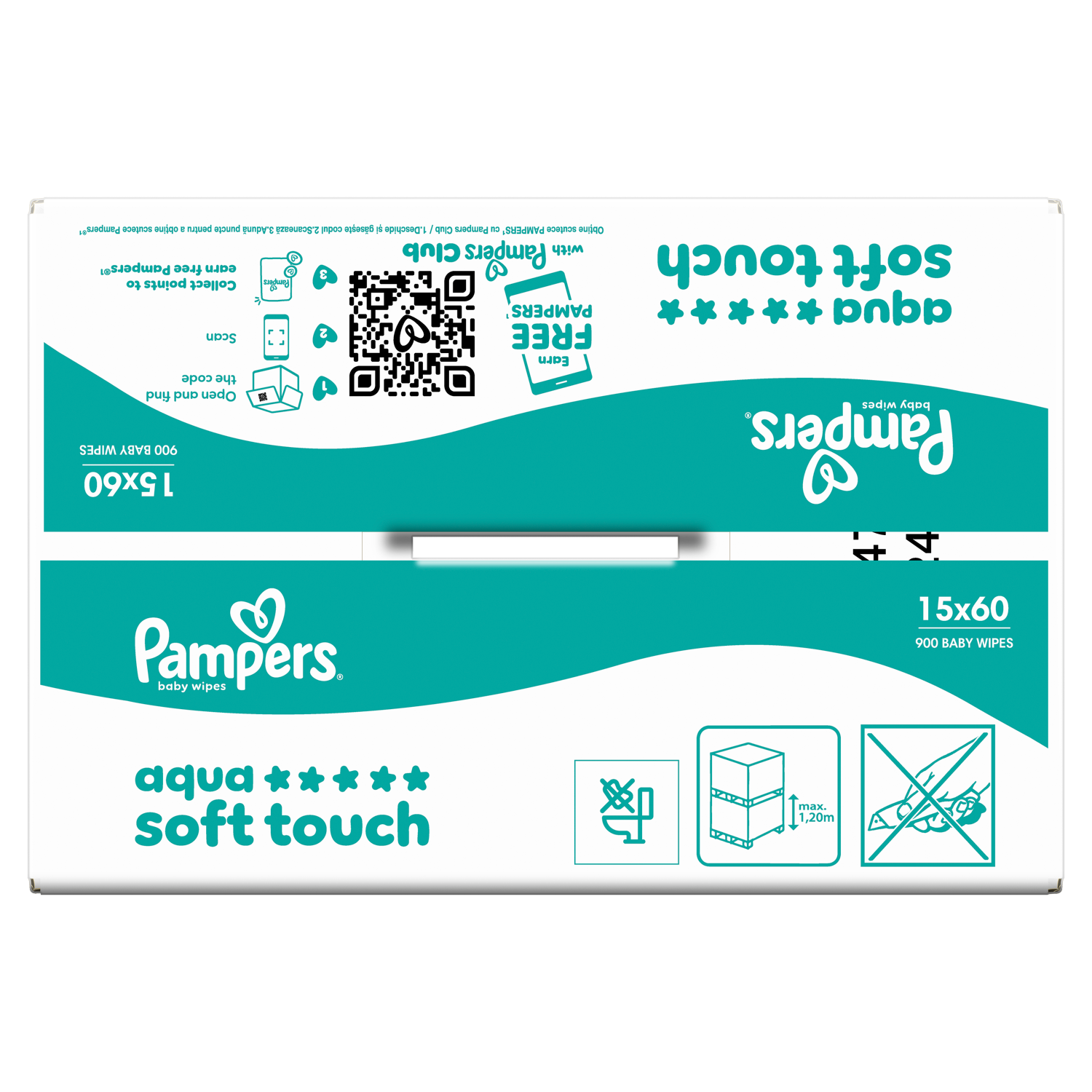 Pampers Aqua Soft Touch Chusteczki Nawilżane Dla Dzieci, 15 Opakowań po 60 Chusteczek = 900 sztuk