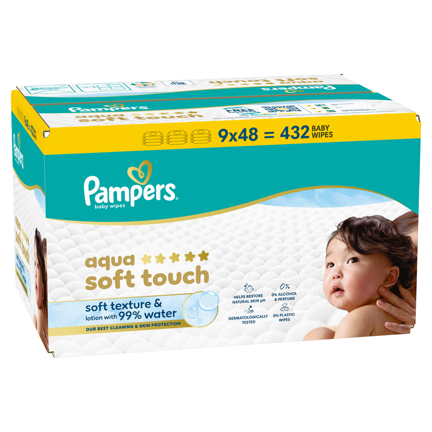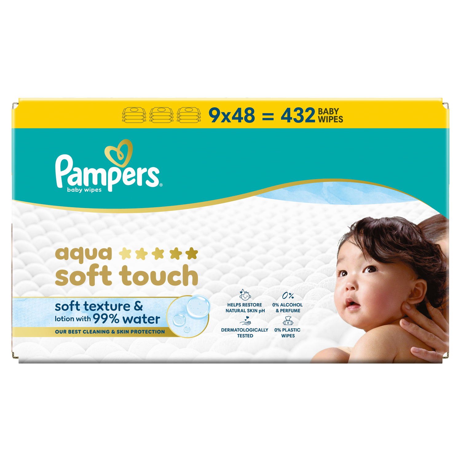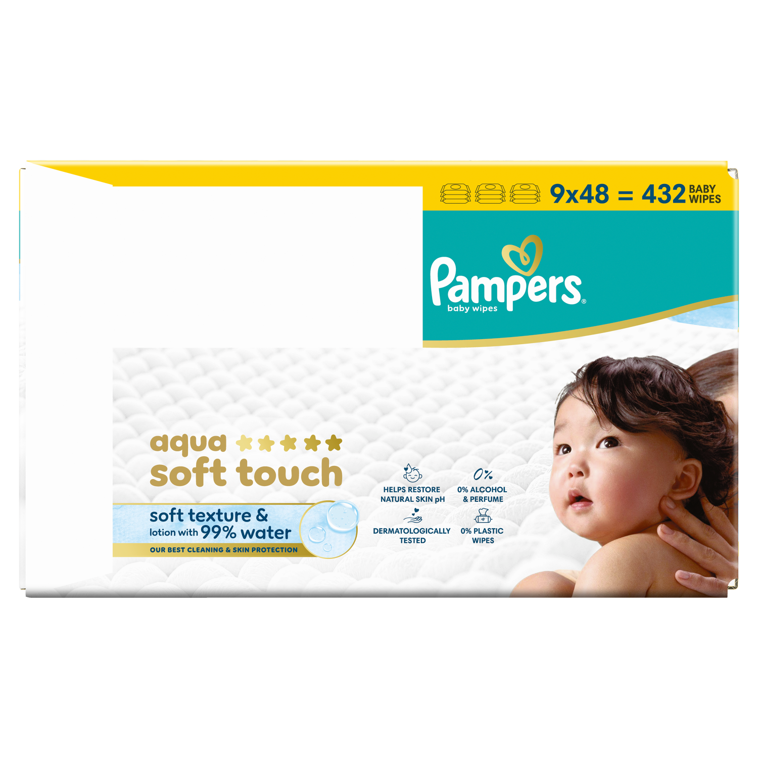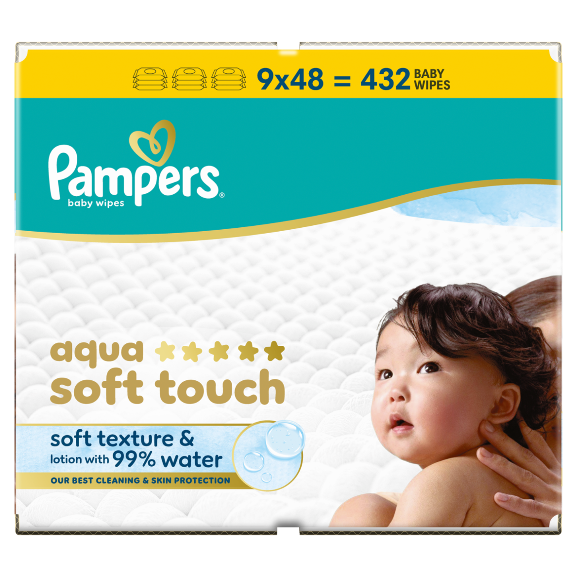 Pampers Aqua Soft Touch Chusteczki Nawilżane Dla Dzieci 9 x 48 = 432 sztuki