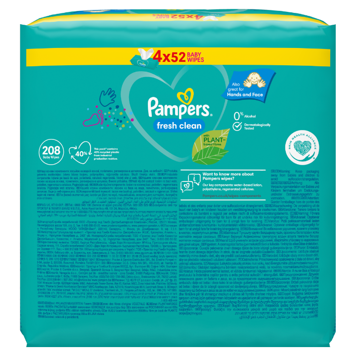 Chusteczki Pampers Fresh & Clean zostały zatwierdzone przez dermatologów z organizacji Skin Health Alliance. Ponieważ nawilżane chusteczki Pampers Fresh & Clean zostały zaprojektowane z myślą o delikatnej skórze dziecka, nie zawierają alkoholu ani barwników.
