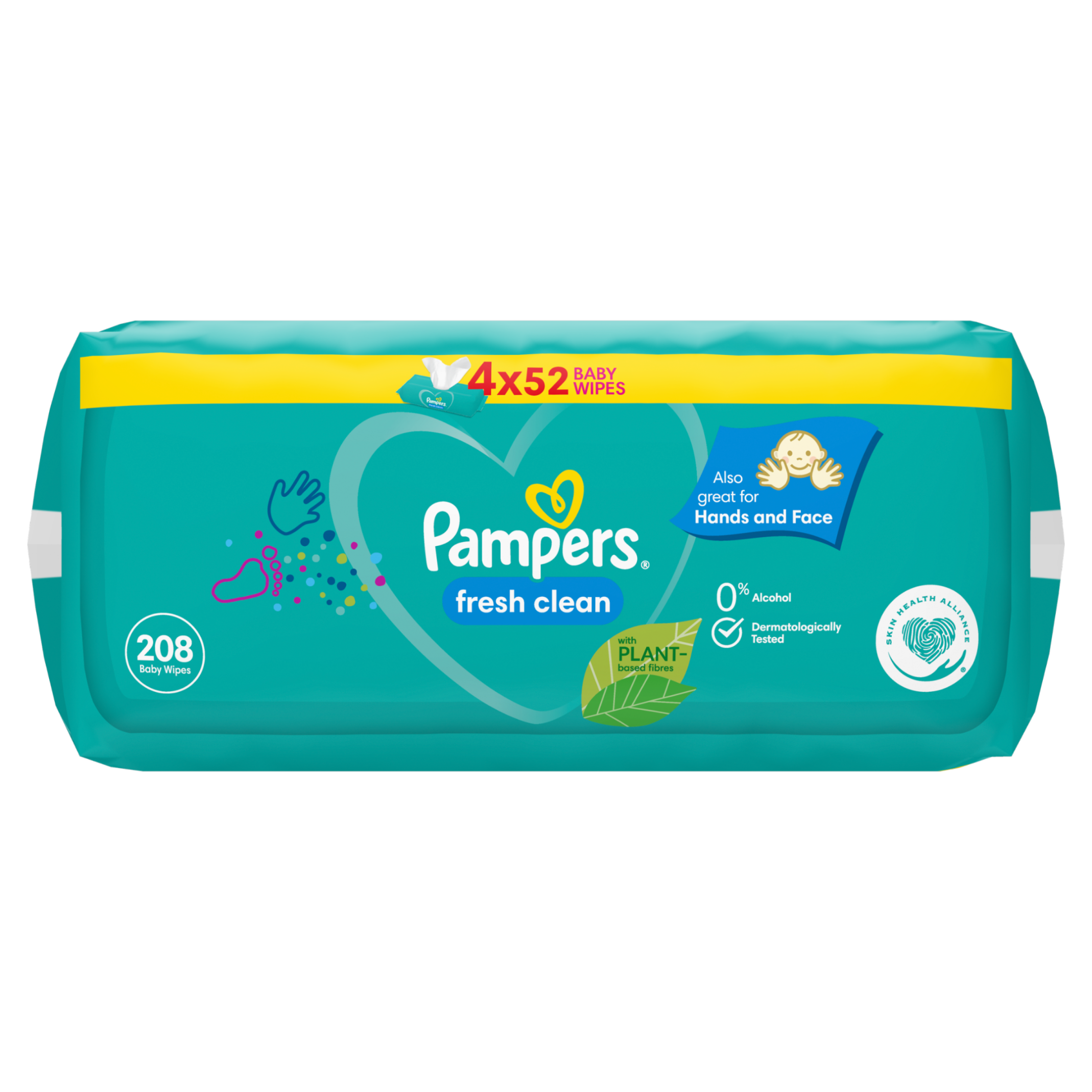 Pampers Fresh Clean Chusteczki nawilżane, 4 opakowania = 208 chusteczek