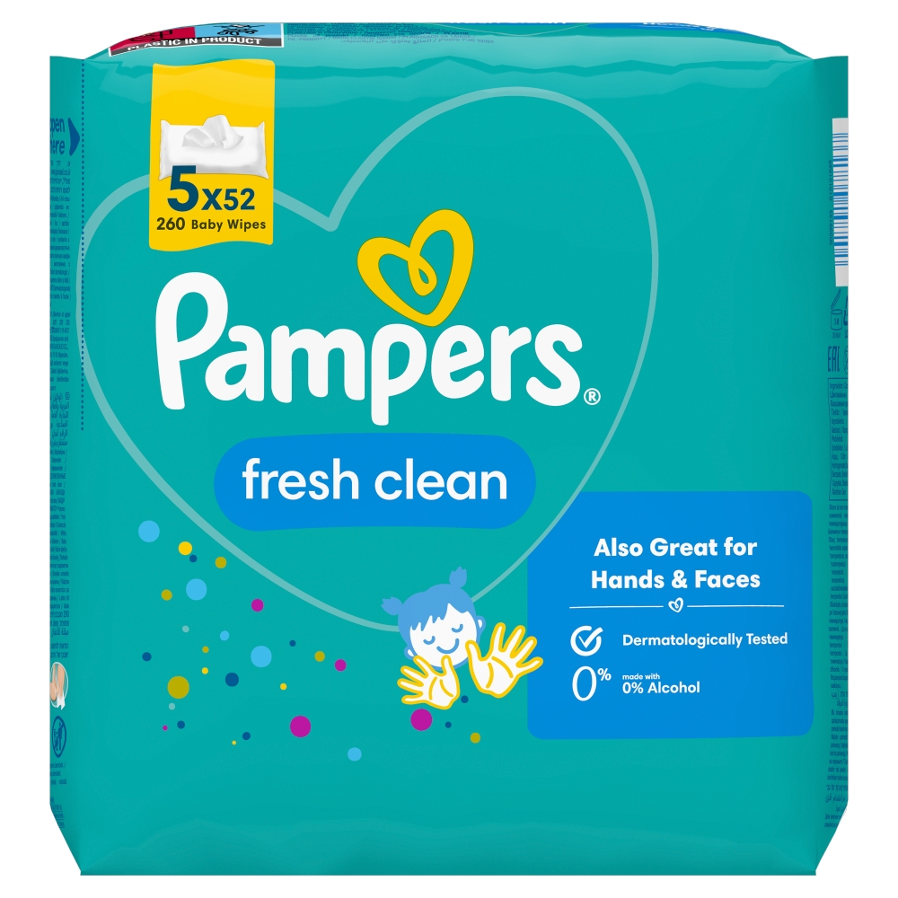Pampers Fresh Clean Chusteczki nawilżane, 5 opakowań = 260 szt