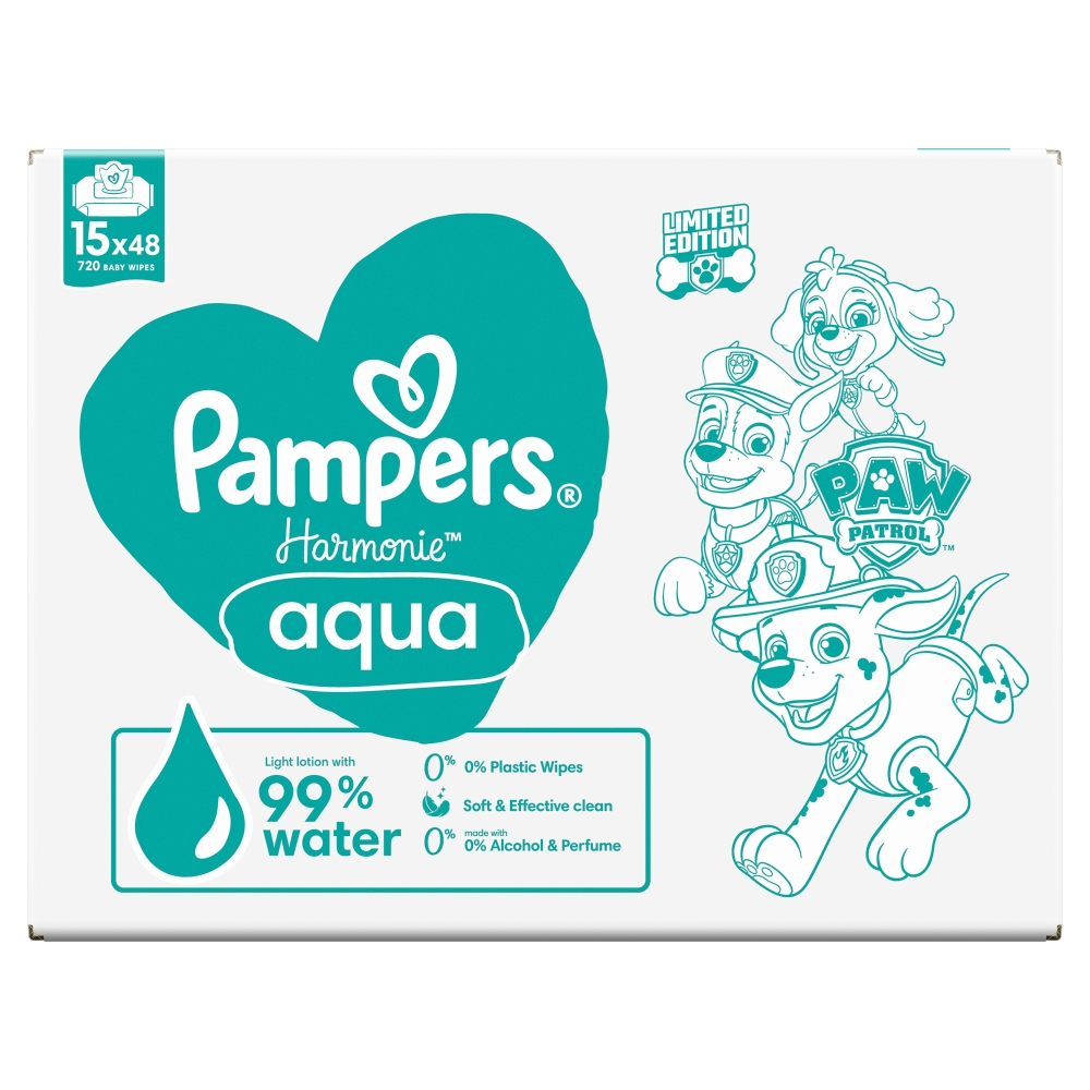 Pampers Harmonie Aqua Chusteczki nawilżane dla dzieci, 15 opakowań=720sztuk