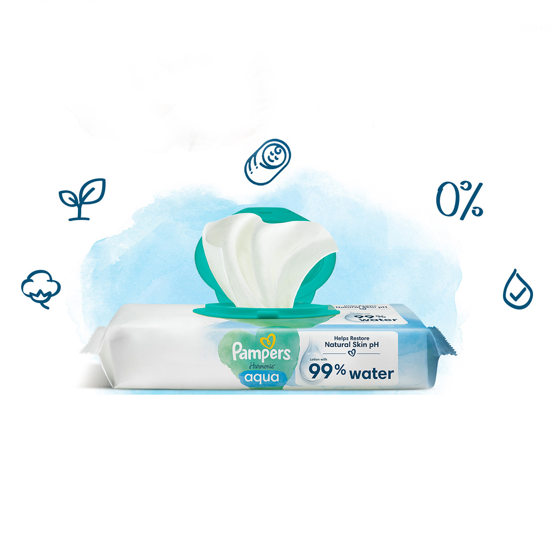 Pampers Harmonie aqua Chusteczki nawilżane dla dzieci 9 opakowań = 432 szt