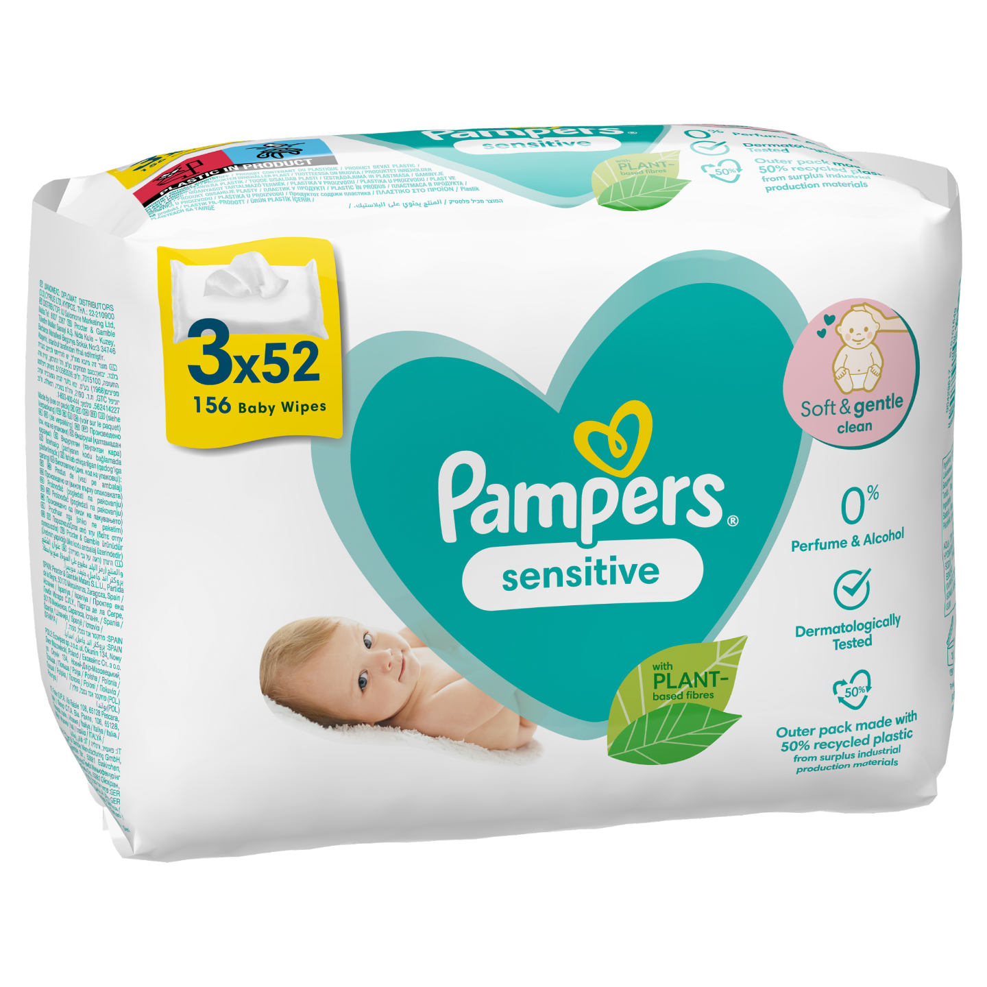 Pampers Sensitive Chusteczki nawilżane, 3 opakowania = 156 chusteczek