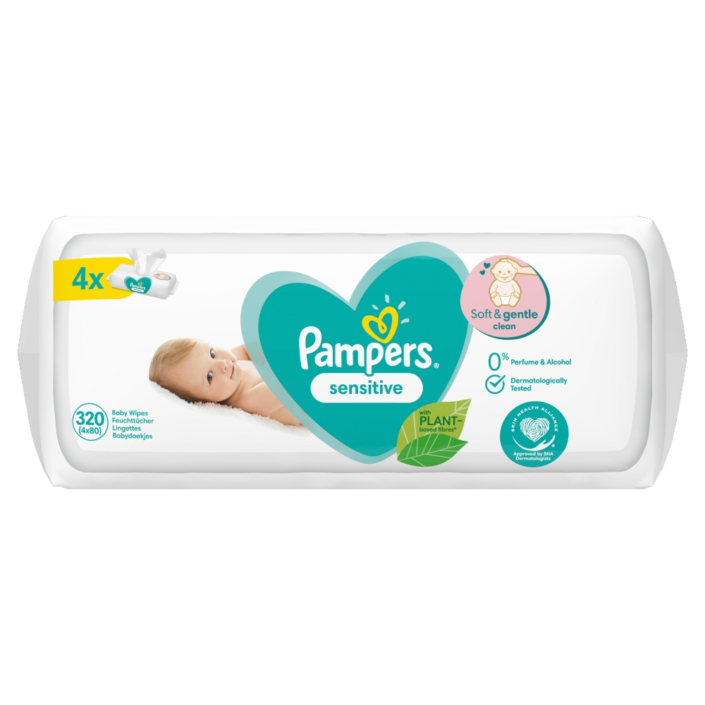Pampers Sensitive Chusteczki 4 opakowania = 320 chusteczek