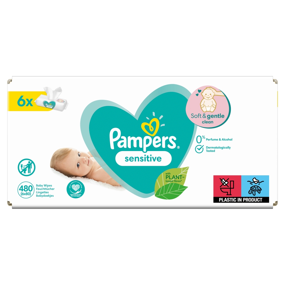 Pampers Sensitive Chusteczki nawilżane dla dzieci, 6 opakowań = 480 szt