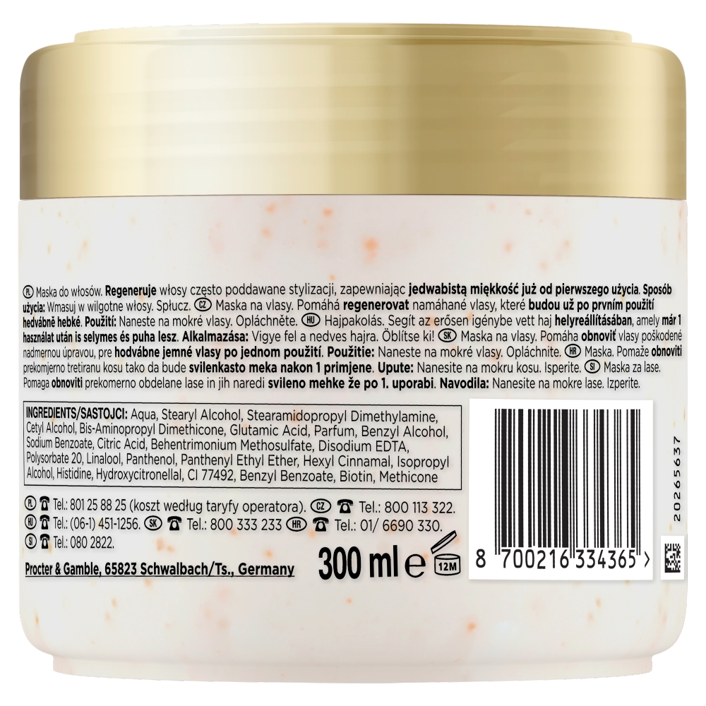 GŁĘBOKIE ODŻYWIENIE WŁOSÓW SUCHYCH I ROZJAŚNIANYCH: głęboko odżywiająca formuła maski regeneruje włosy poddawane intensywnym zabiegom, zapewniając im jedwabistą miękkość