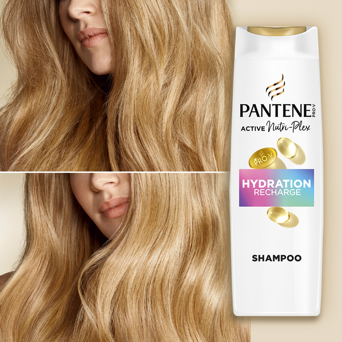 Odkryj szampon Pantene Hydration Recharge, doskonałe źródło odżywienia i ochrony Twoich włosów. Delikatna formuła z PRO-V i innowacyjną technologią ACTIVE NUTRI-PLEX oczyszcza włosy, dostarczając im nawilżających składników odżywczych. Stosowany wraz z odżywką bez spłukiwania natychmiast odmienia wygląd suchych włosów, pozostawiając je miękkie, gładkie i błyszczące, a jednocześnie pomaga chronić ich wiązania. Uzupełnij swój rytuał pielęgnacyjny o nasz produkt termoochronny, który pod wpływem ciepła jeszcze bardziej odżywi Twoje włosy.