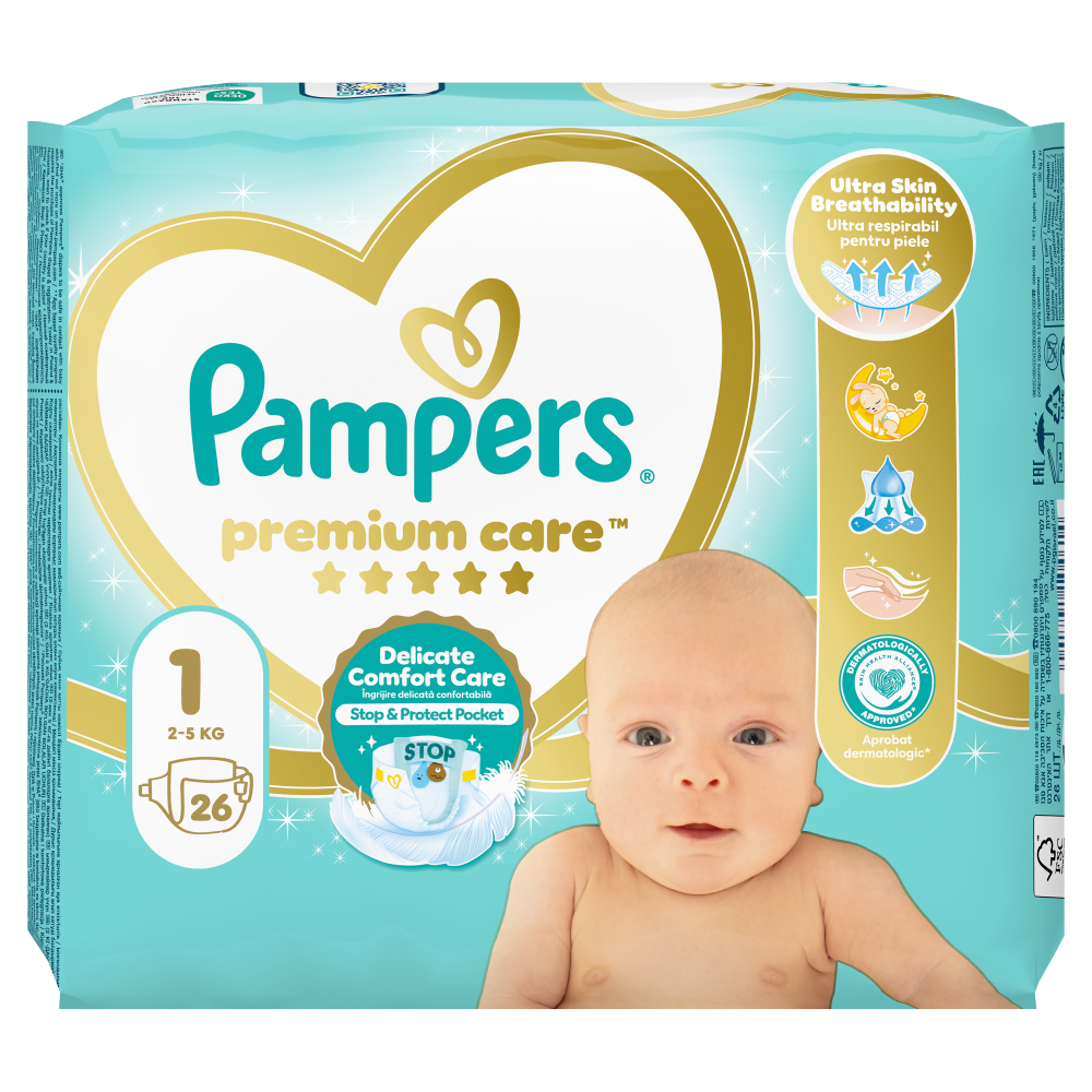 Pieluchy Pampers Premium Care rozmiar 1, 26 pieluszki, 2kg-5kg