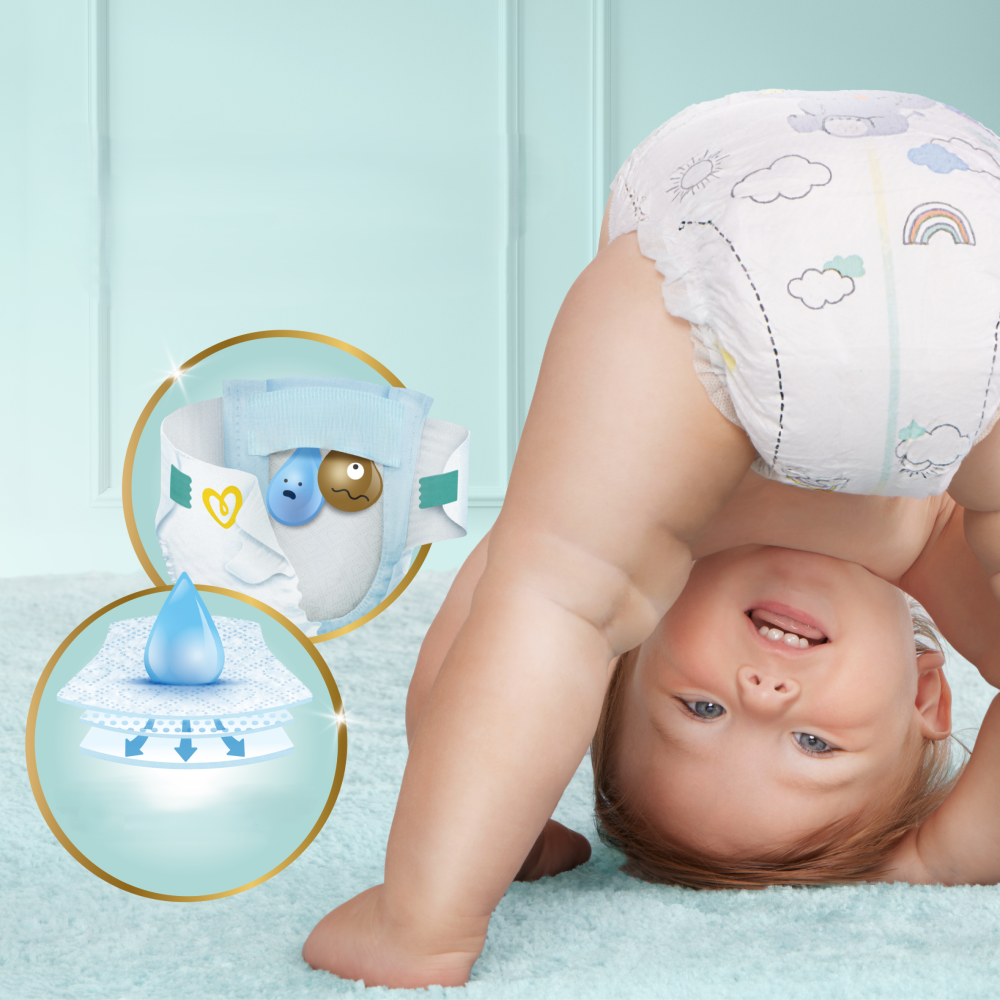 Stworzyliśmy pieluszkę Pampers nr 1 specjalnie dla delikatnej skóry noworodków. To także numer 1 w ochronie przed przeciekaniem.