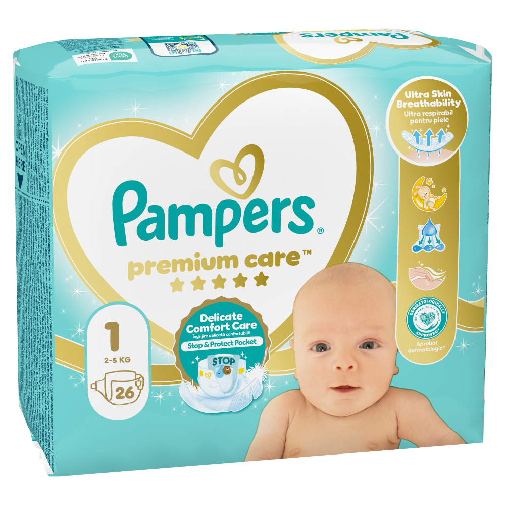 Pieluchy Pampers Premium Care rozmiar 1, 26 pieluszki, 2kg-5kg