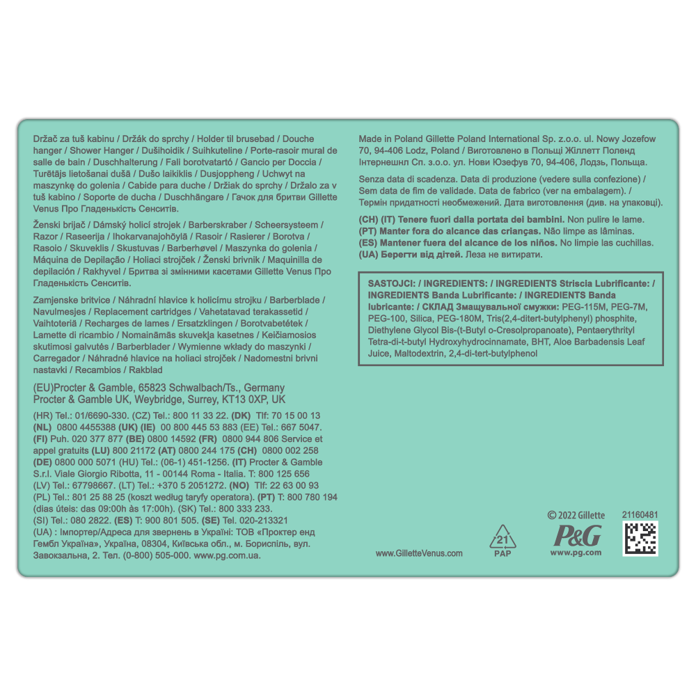 Ostrza maszynki do golenia dla kobiet Venus zostały zaprojektowane z myślą o kobiecym ciele. Wkłady wymienne Venus pasują do wszystkich rączek maszynek do golenia Venus (z wyjątkiem Simply Venus i Venus do golenia włosów łonowych i skóry).