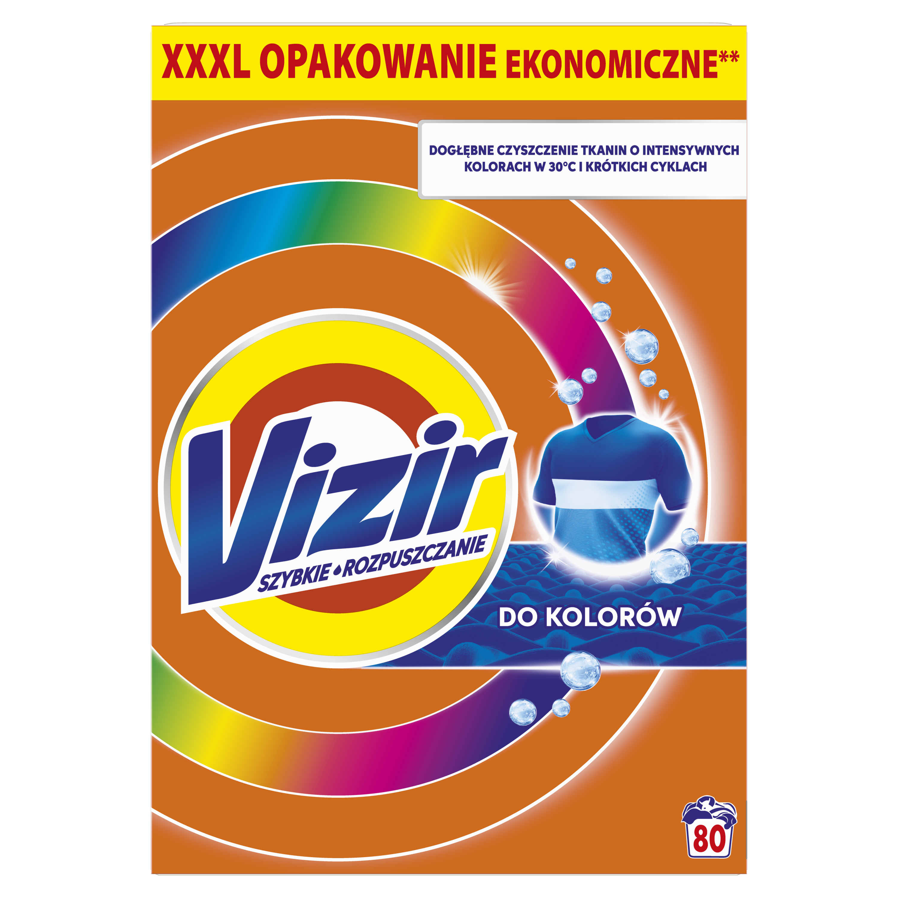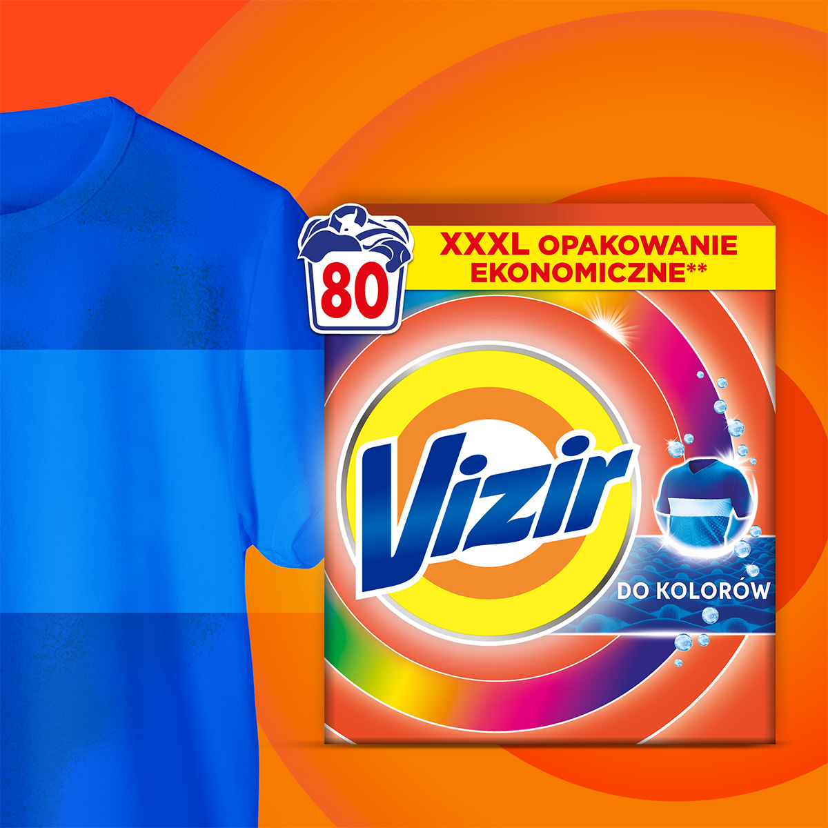 SKONCENTROWANY, SZYBKO ROZPUSZCZAJĄCY SIĘ PROSZEK DO PRANIA VIZIR zapewnia dokładne pranie, nawet w temperaturze 30 Stopni i Krótkich Cyklach. Koniec z widocznymi osadami – technologia Anti-Residue aktywuje się natychmiast i sprawia, że ubrania będą nieskazitelnie czyste.