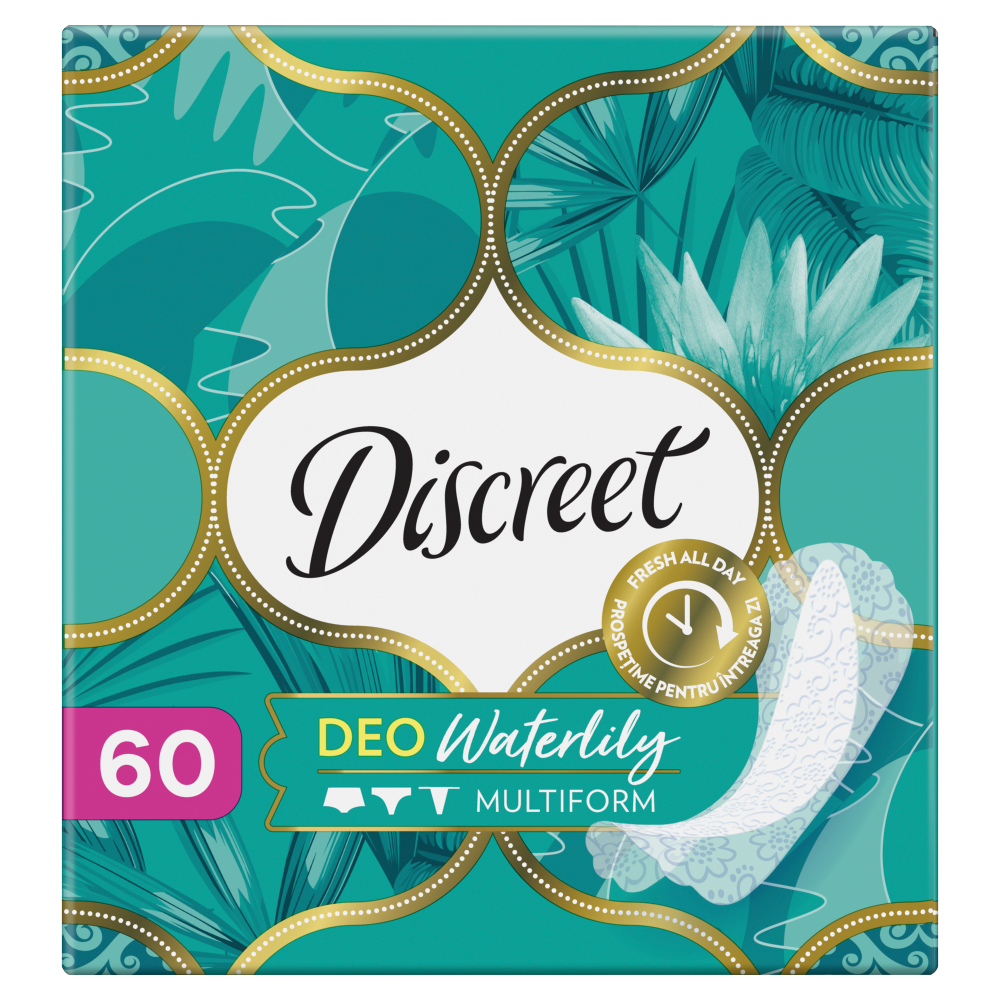 Wkładki Discreet Multiform pomogą Ci poczuć się świeżo i pięknie bez względu na to, jaki jest Twój styl! Te wkładki higieniczne pozwalają swobodnie oddychać skórze miejsc intymnych, co zapewnia uczucie świeżości i komfortu aż do 12 godzin. Są tak cienkie, że nawet ich nie poczujesz, a ich uniwersalny kształt sprawia, że pasują do każdego typu bielizny. Charakterystyczny zapach Waterlily pachnie tak świeżo i kobieco. Bez względu na to, co przyniesie Ci dzień, te wkładki sprawią, że wszystko się uda!
